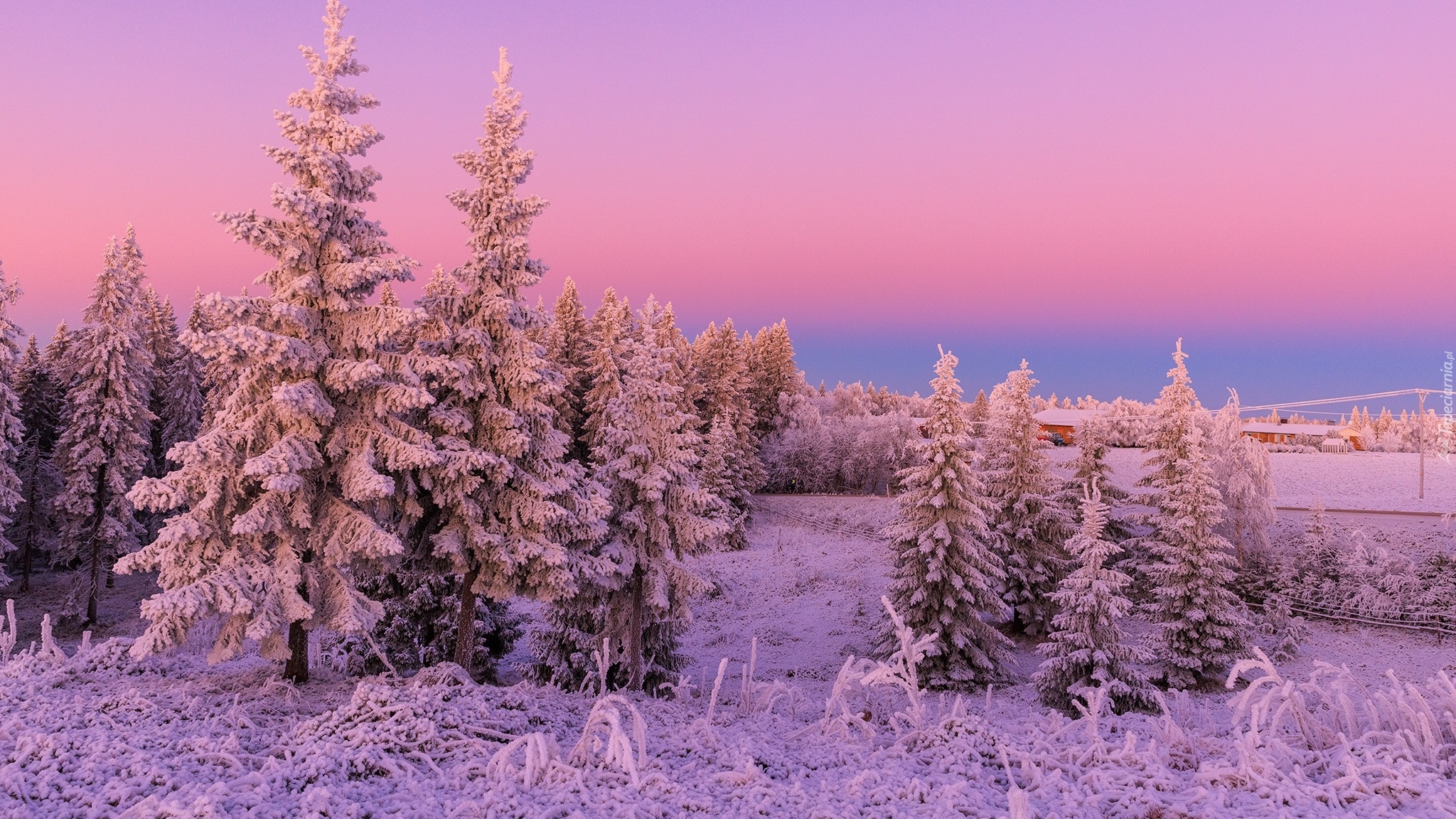 Edytor tapety: Ośnieżone śniegiem drzewa na polanie