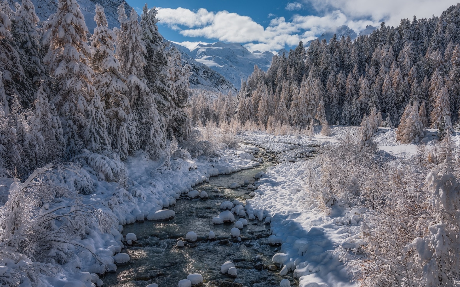Edytor tapety: Strumyk w ośnieżonym lesie