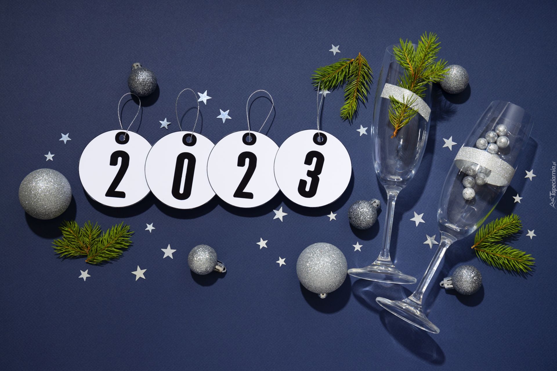 Edytor tapety: Kieliszki obok zawieszek z datą 2023