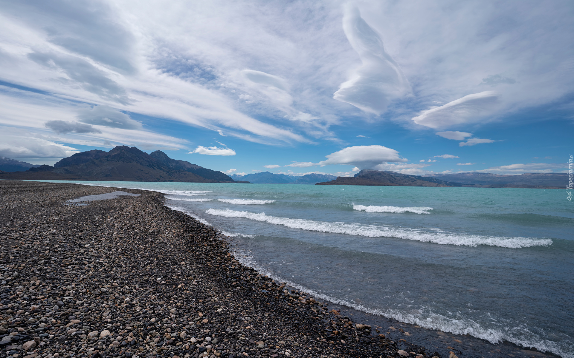 Edytor tapety: Kamienista plaża na brzegu jeziora