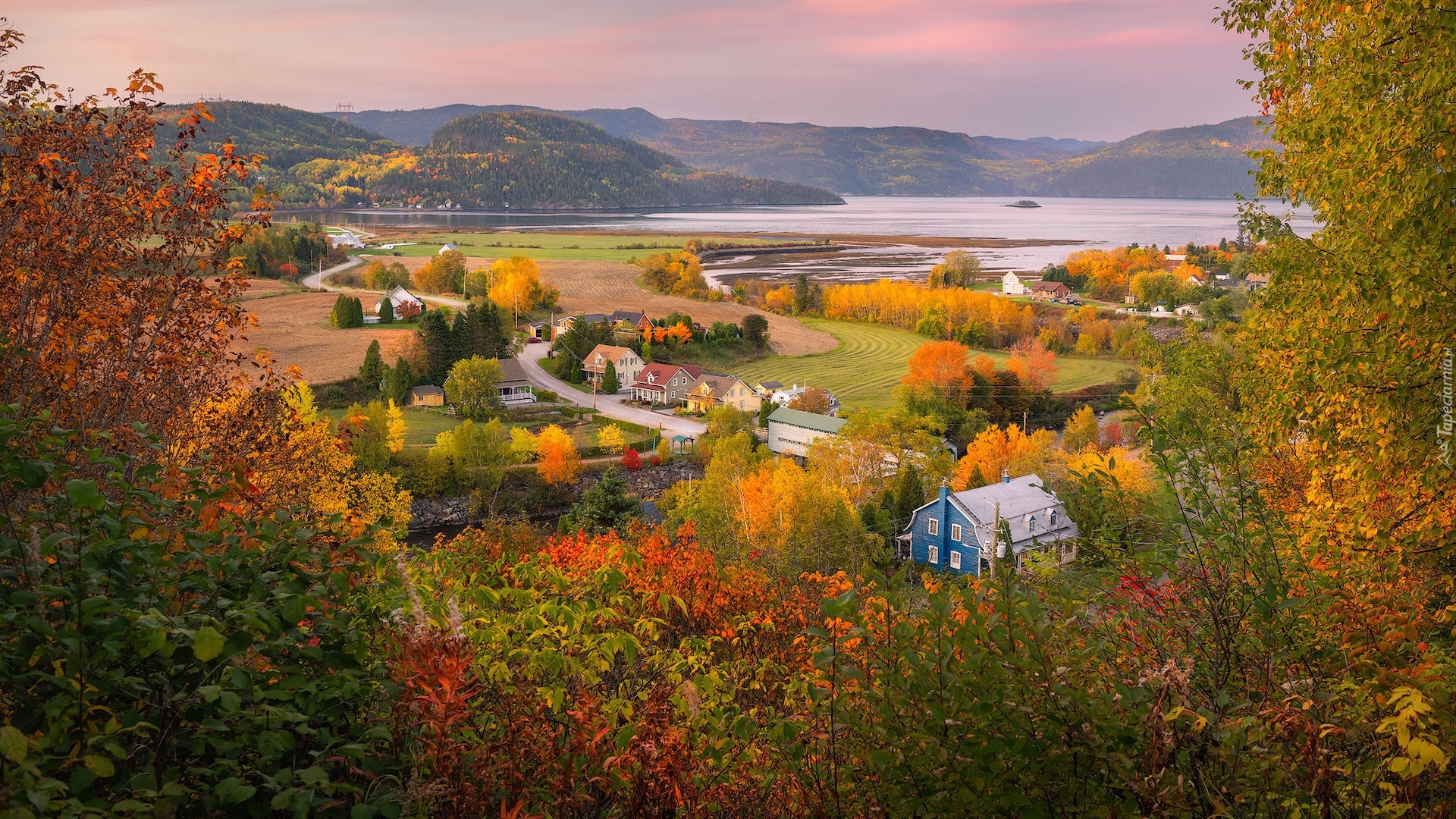 Edytor tapety: Widok ze wzgórza na domy w prowincji Quebec