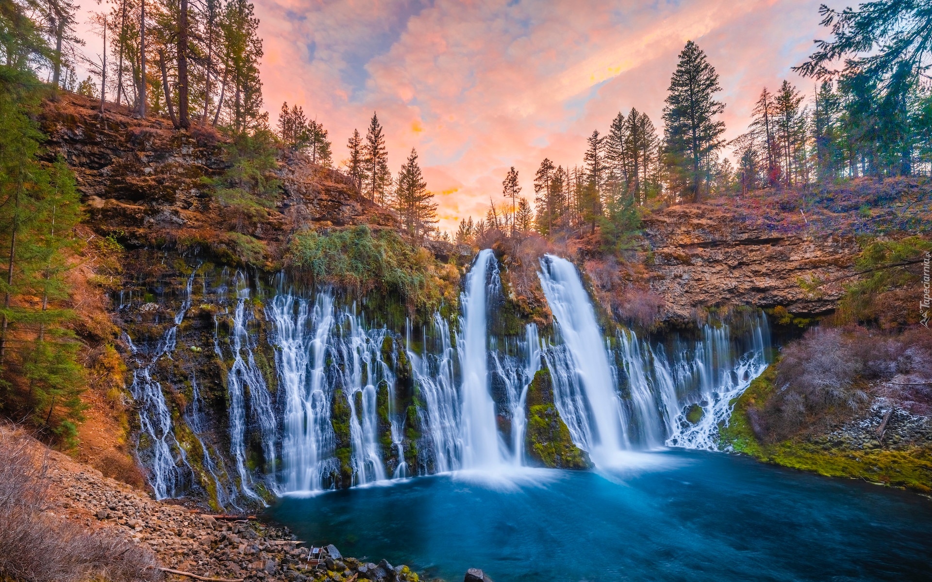Edytor tapety: Wodospad Burney Falls jesienią