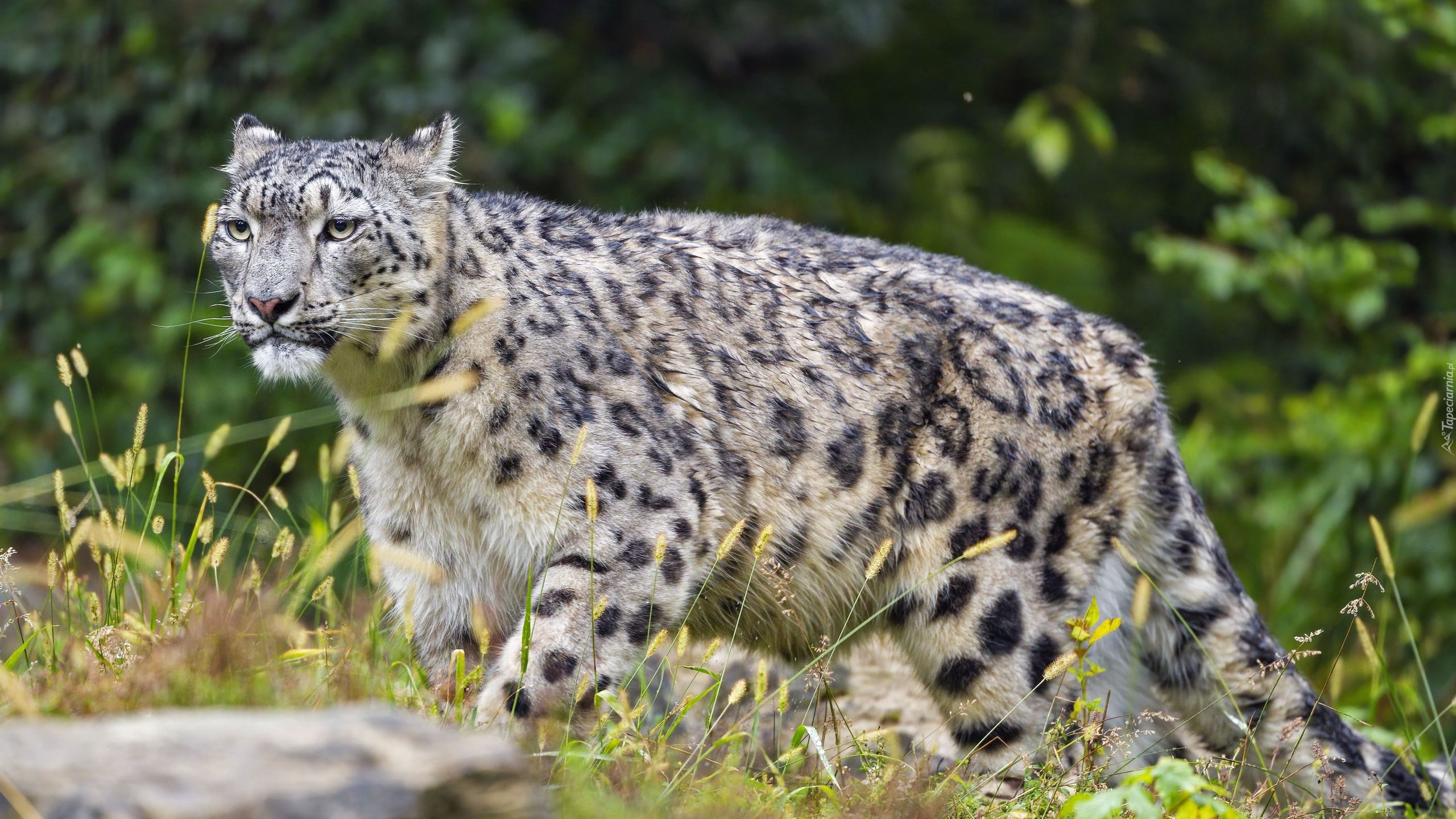 Edytor tapety: Irbis śnieżny na trawie