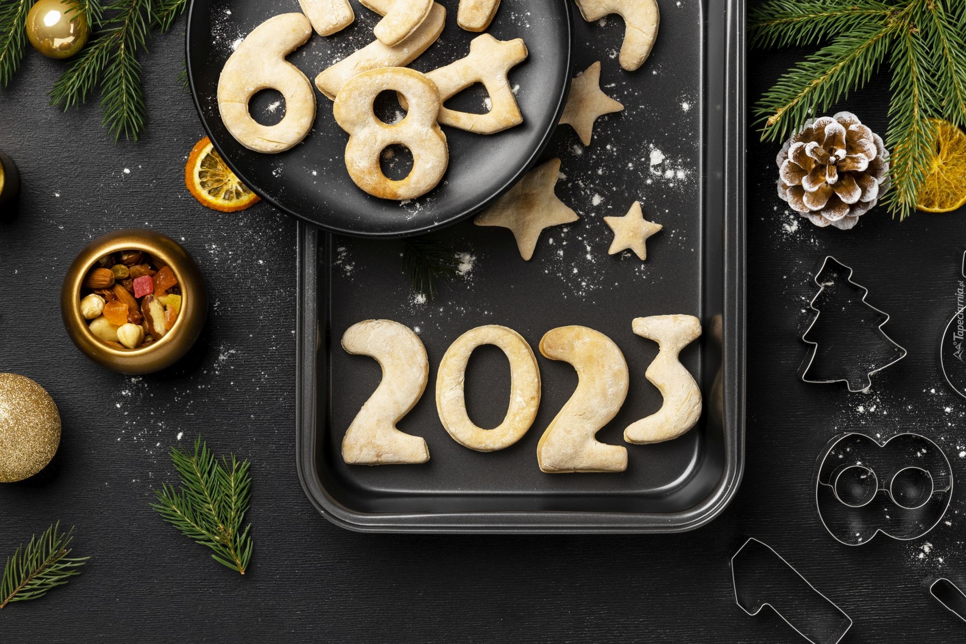 Edytor tapety: Data 2023 z ciastek na tacy