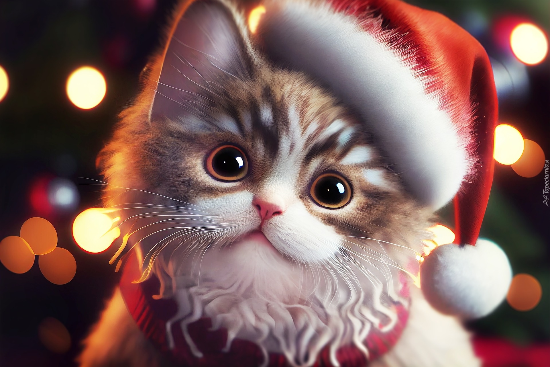 Edytor tapety: Głowa kotka w czapce Mikołaja