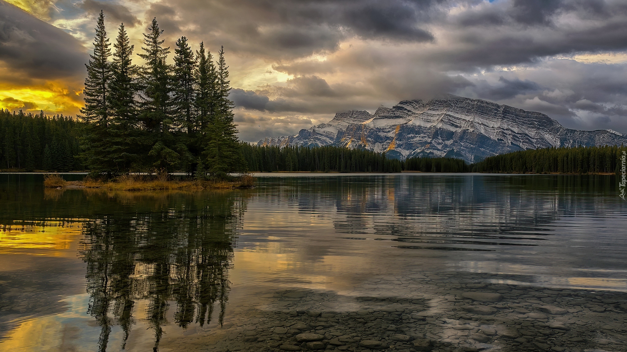 Edytor tapety: Góry i las nad jeziorem Two Jack Lake