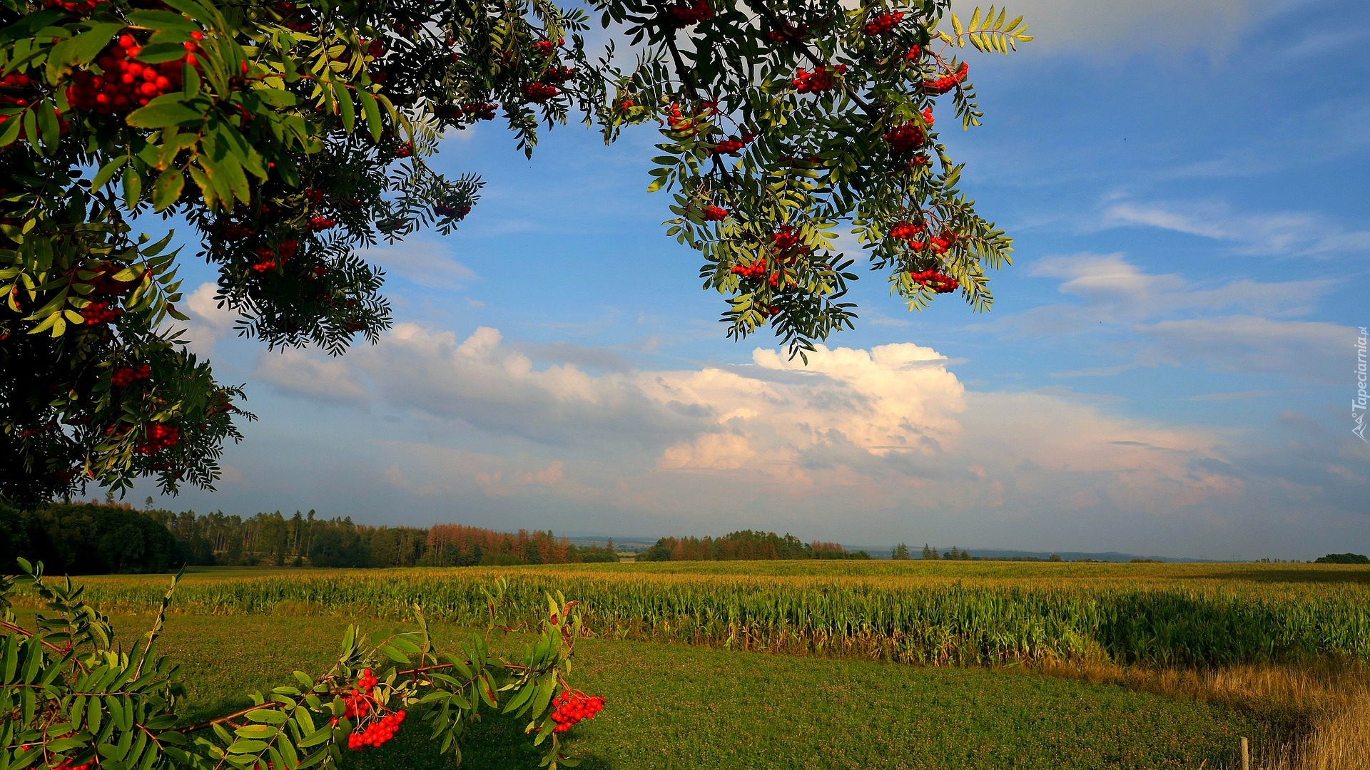Edytor tapety: Jarzębina obok pola kukurydzy