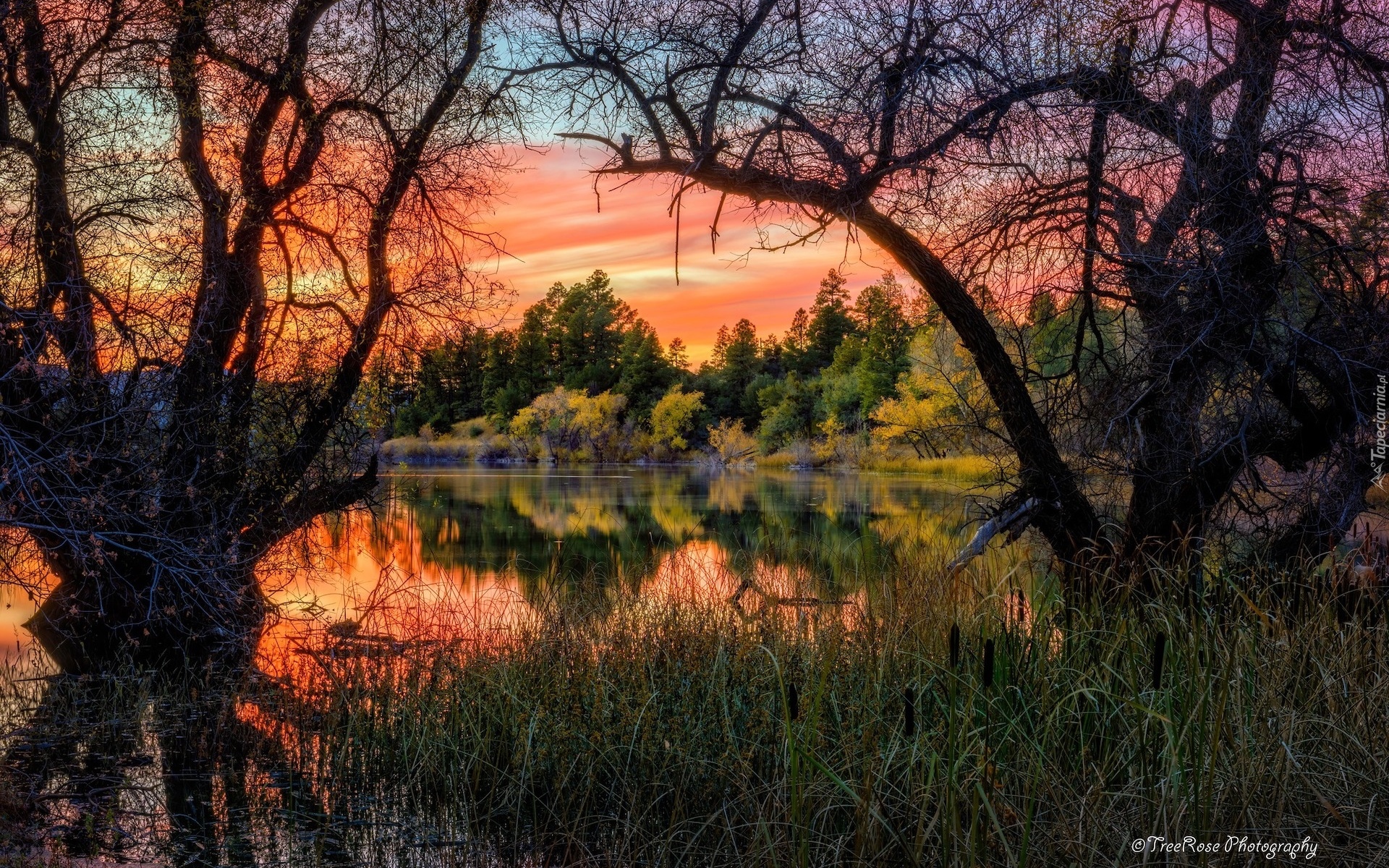 Edytor tapety: Zachód słońca nad jeziorem Goldwater Lake w Arizonie