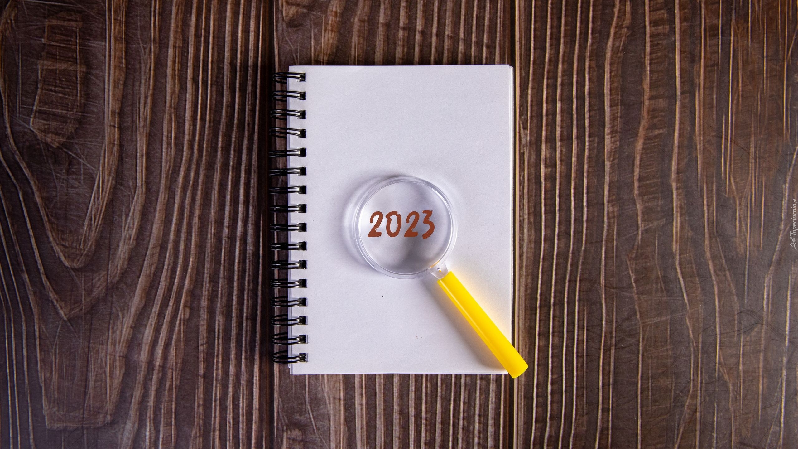 Edytor tapety: Data 2023 pod lupą na notesie