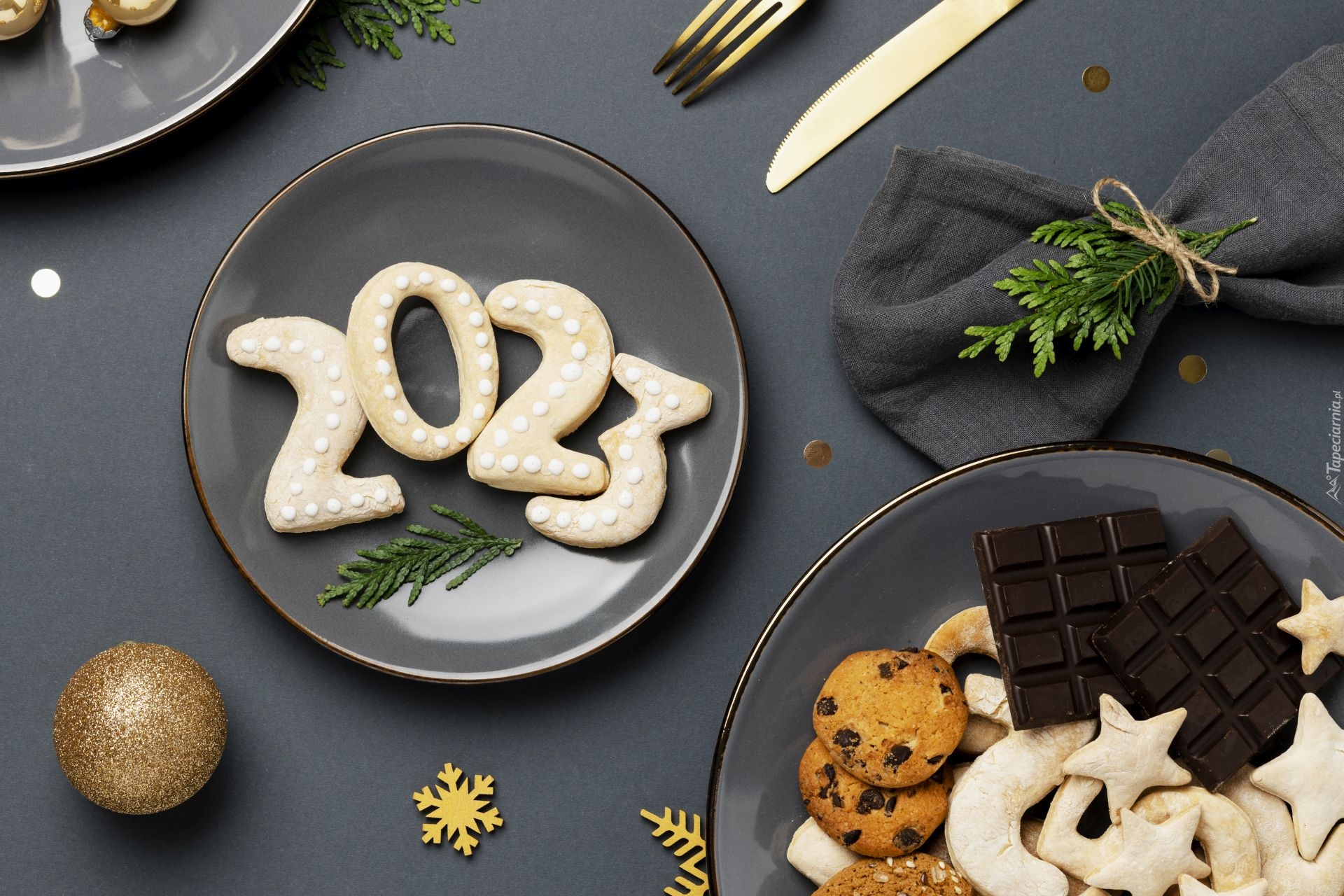 Edytor tapety: Ciasteczka z datą 2023 na talerzu