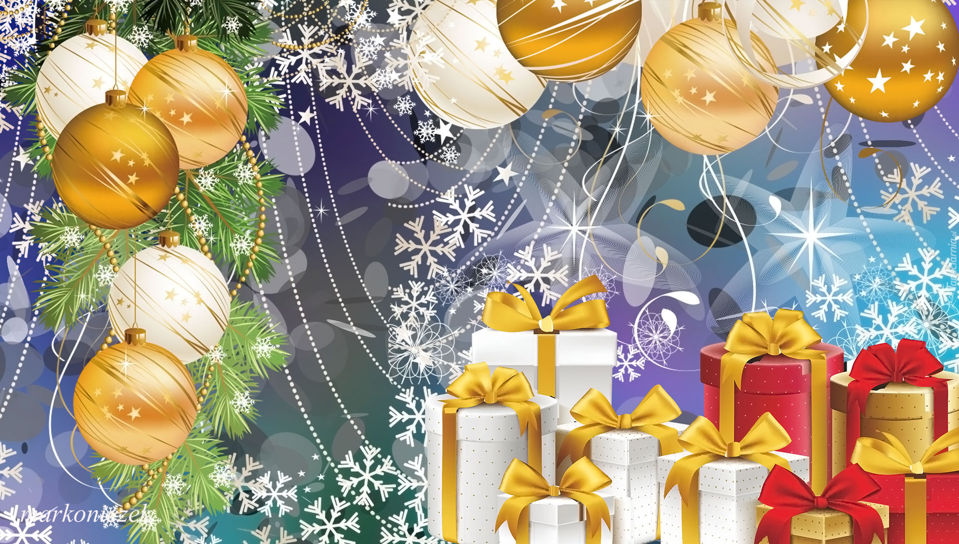 Edytor tapety: Prezenty i bombki w grafice
