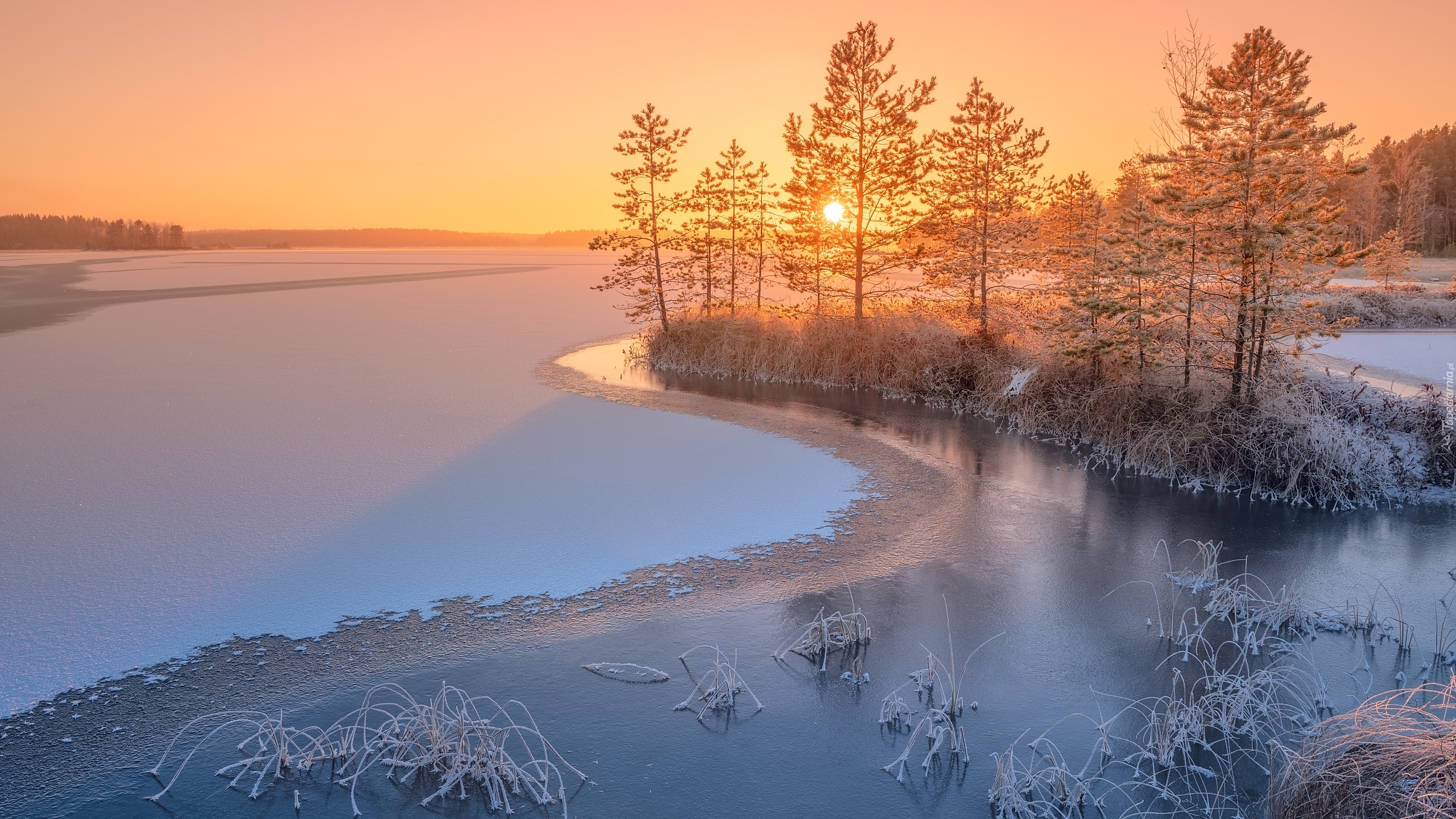 Edytor tapety: Słoneczny poranek nad zamarzniętym jeziorem Ładoga