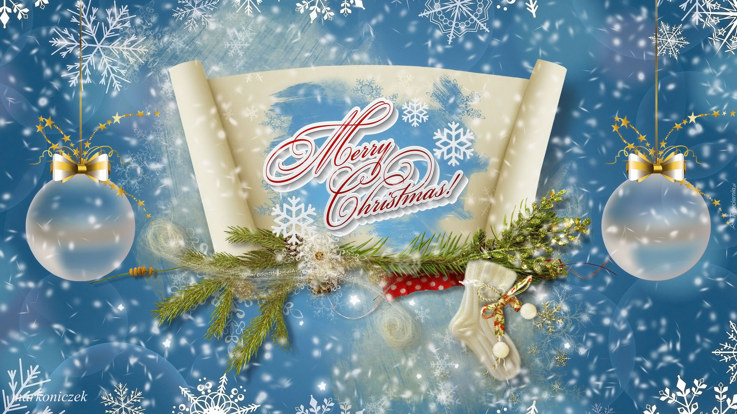Edytor tapety: Białe bombki i życzenia na Boże Narodzenie
