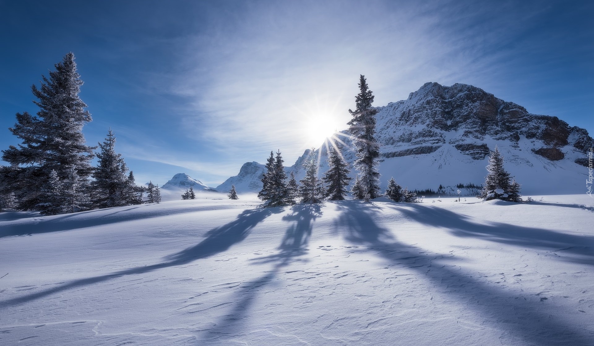 Edytor tapety: Zimowy górski krajobraz w słoneczny dzień