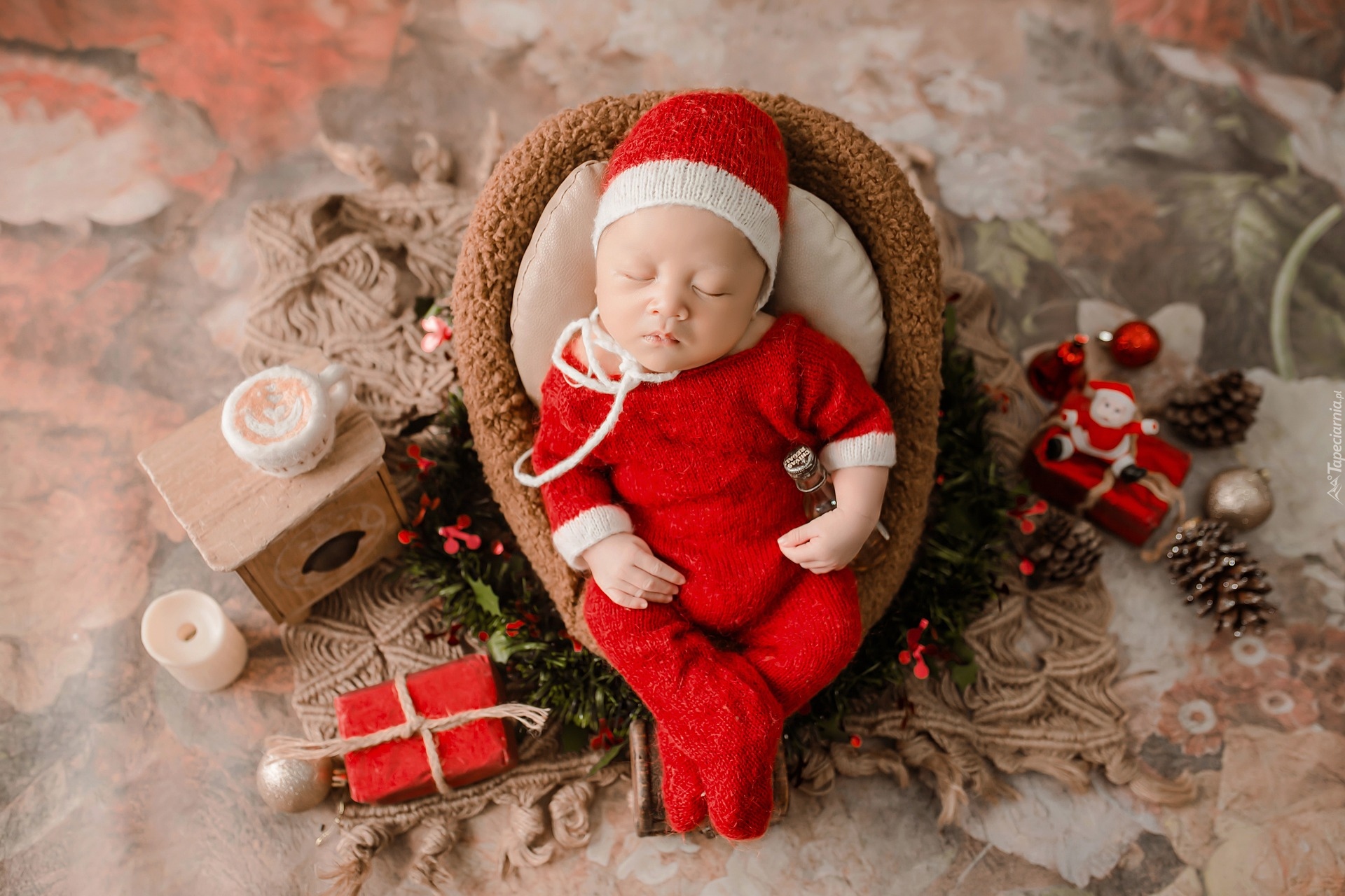 Edytor tapety: Dekoracje świąteczne obok śpiącego dziecka