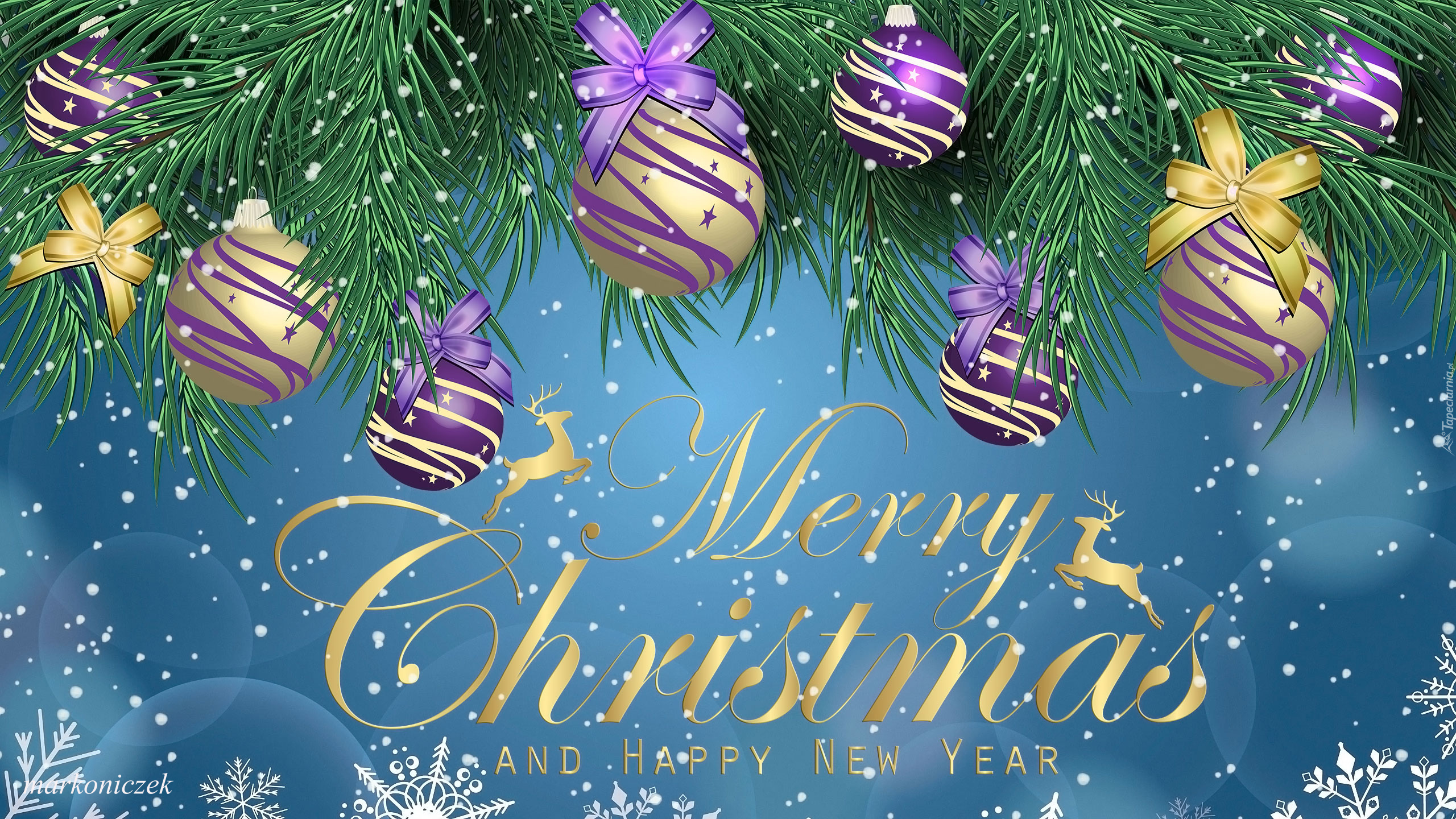 Edytor tapety: Życzenia świąteczno-noworoczne pod bombkami na gałązkach