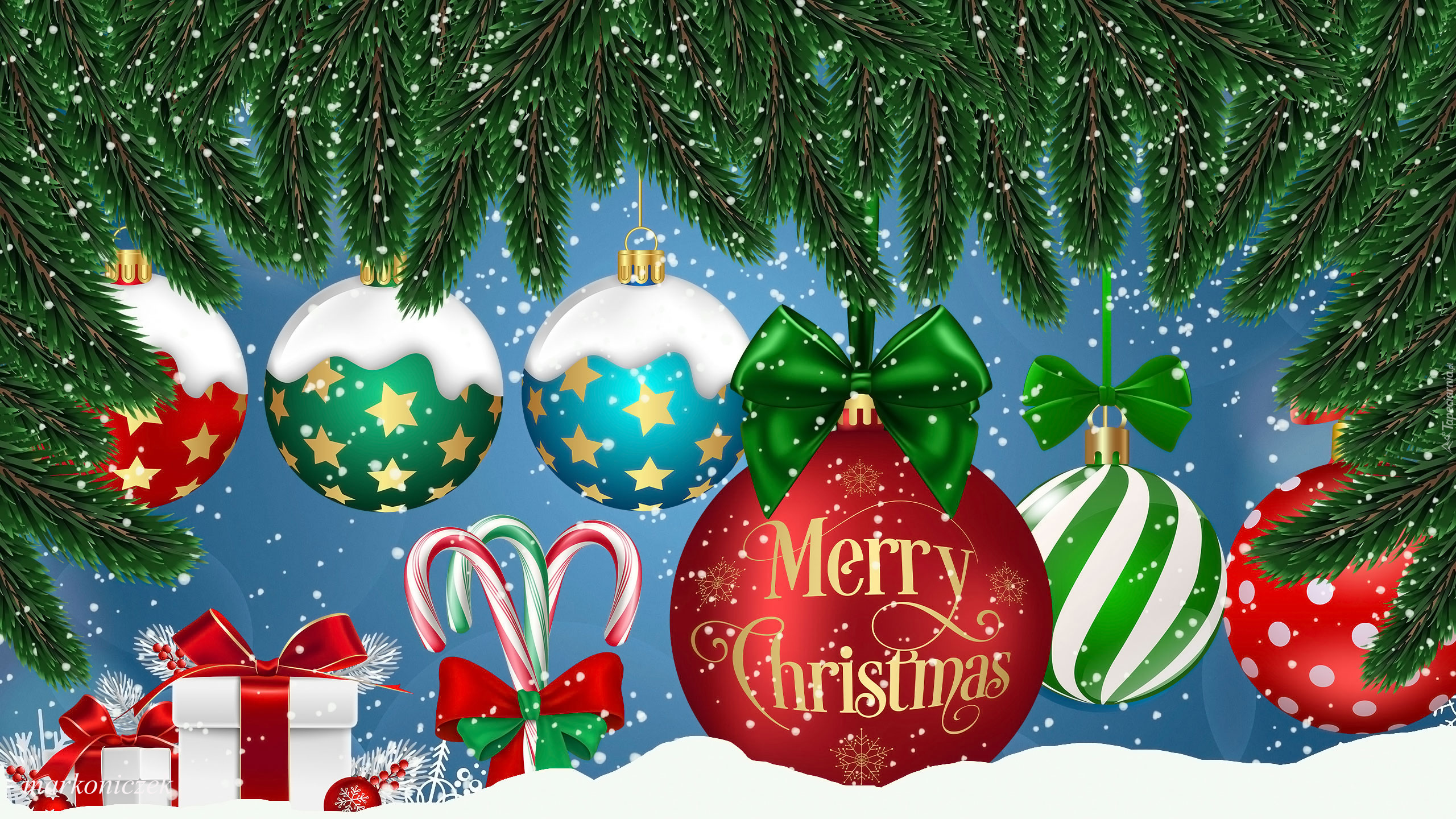 Edytor tapety: Grafika z bombkami i życzeniami