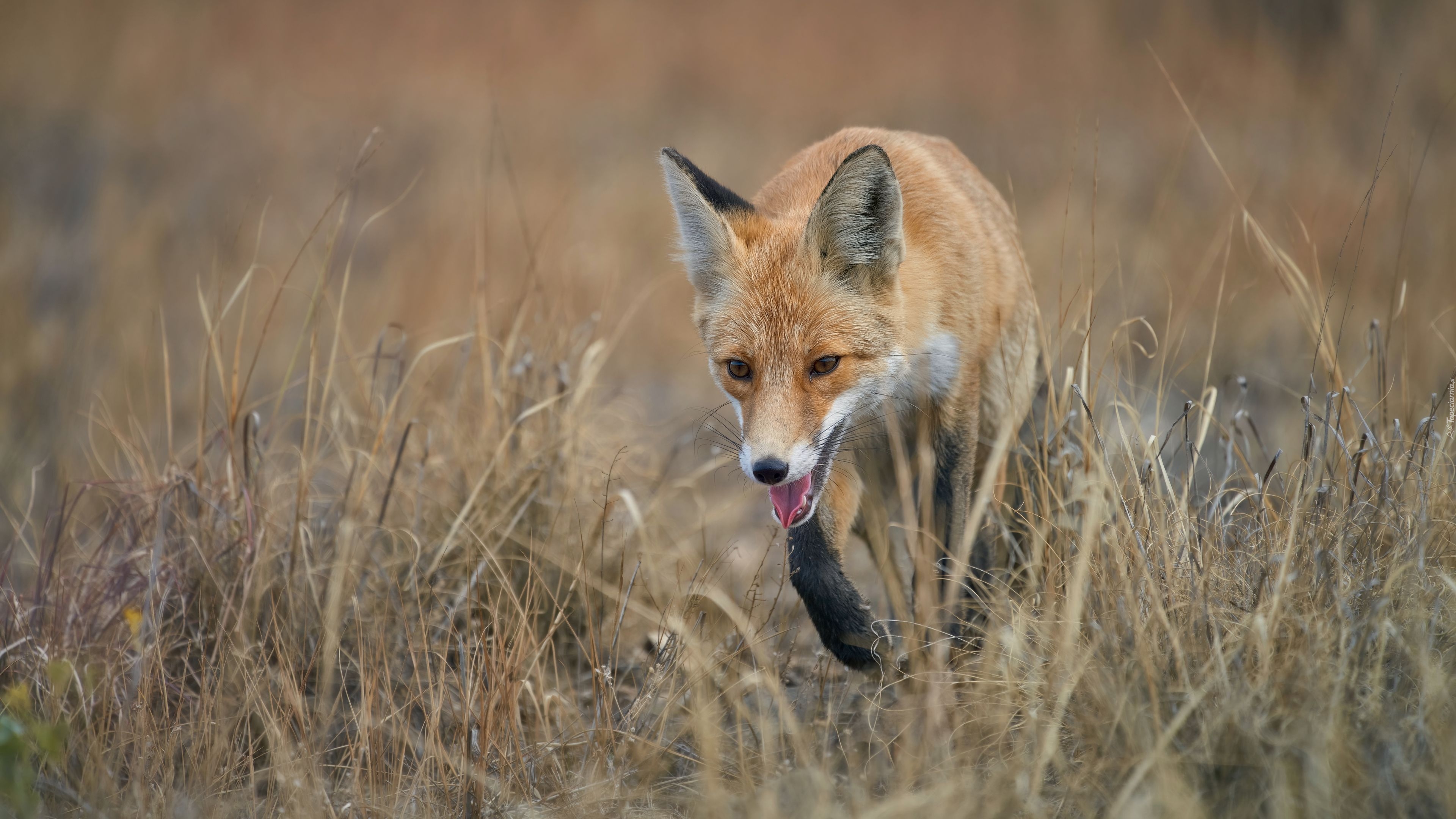 Edytor tapety: Lis spacerujący w trawie