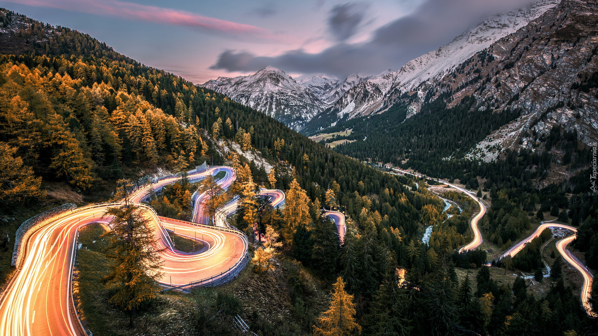 Edytor tapety: Kręta droga w górach Szwajcarii