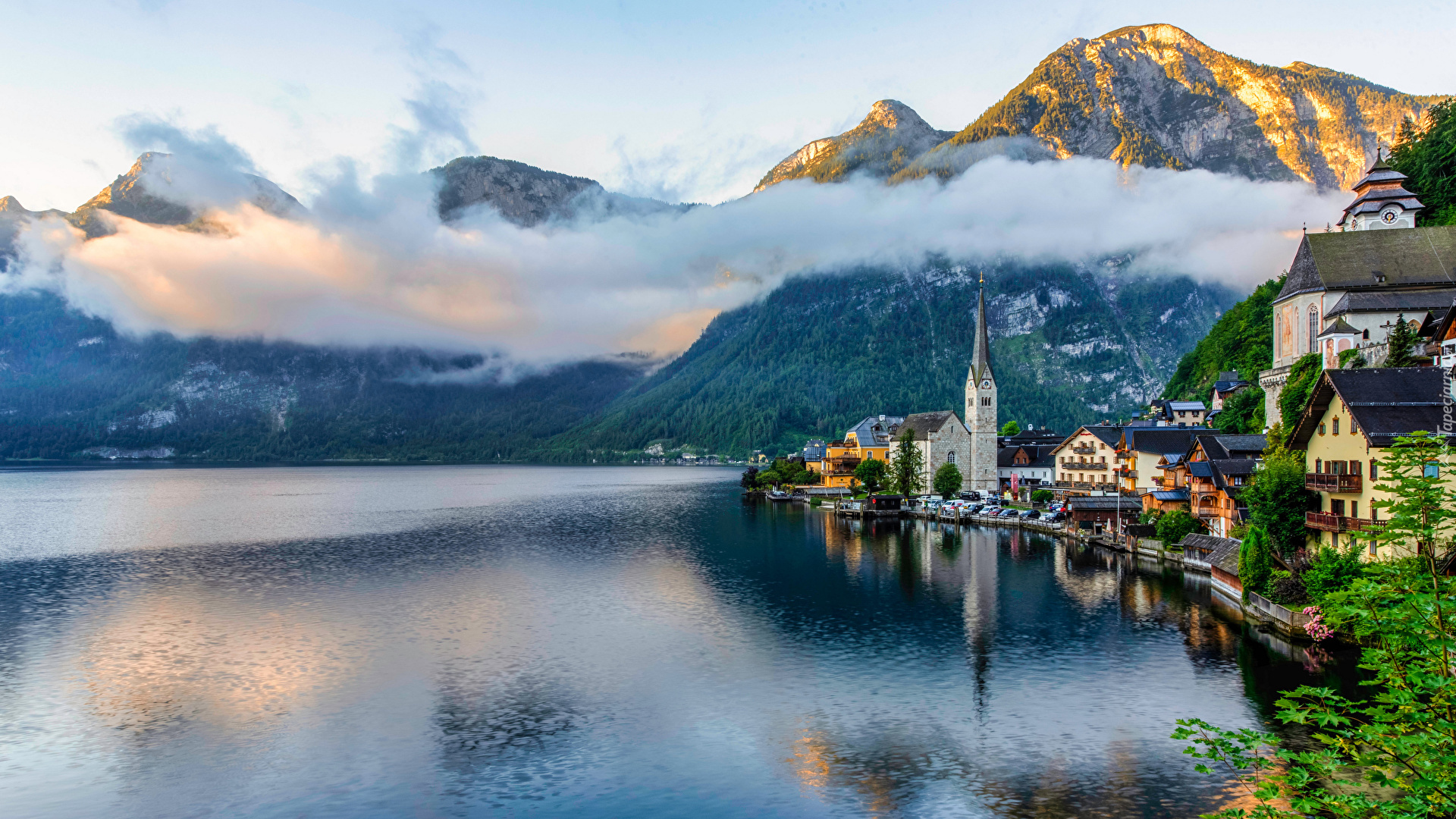 Edytor tapety: Miasteczko Hallstatt w zamglonych Alpach