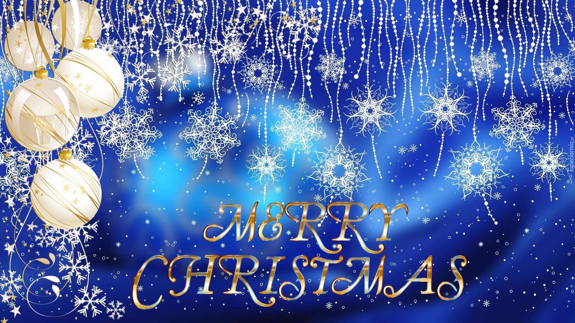 Edytor tapety: Śnieżynki i bombki nad życzeniami świątecznymi