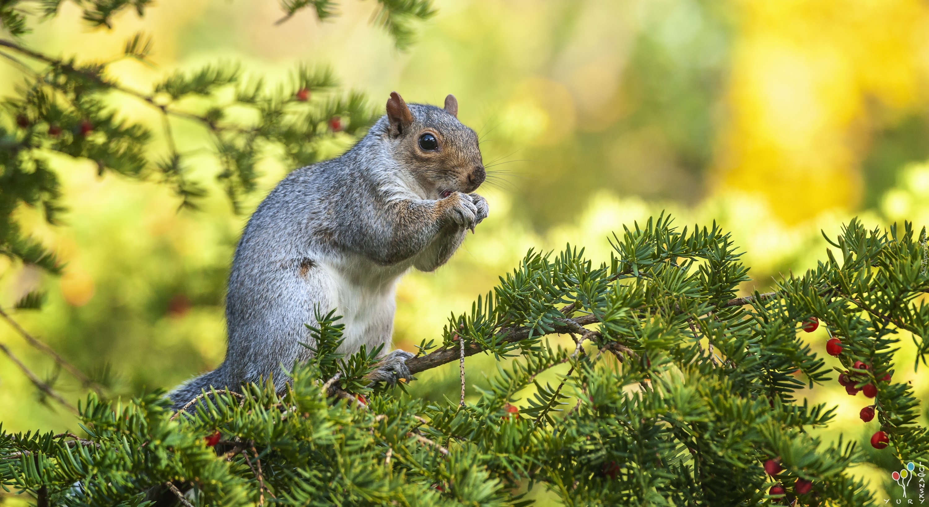 Edytor tapety: Wiewiórka szara na gałązce