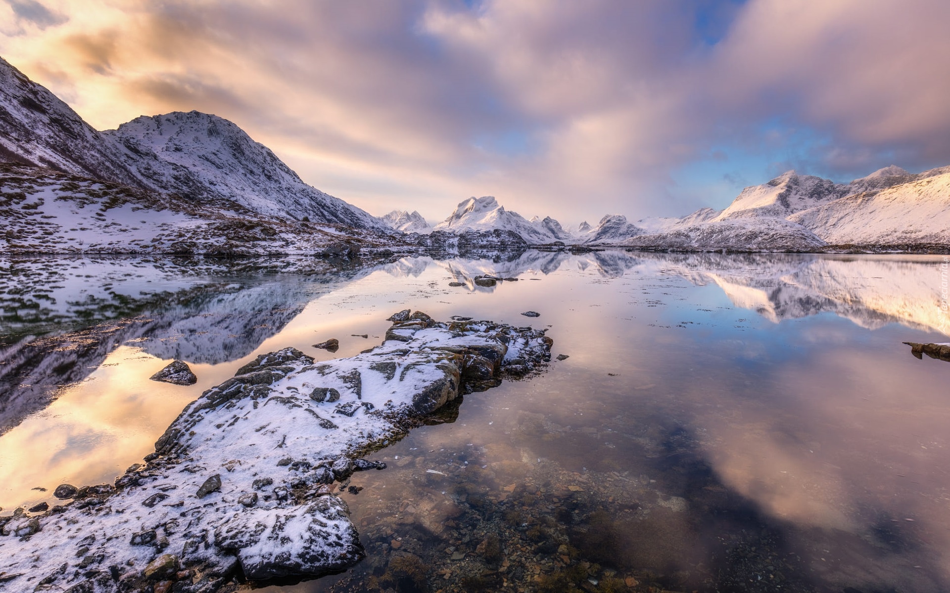 Edytor tapety: Norweskie góry w zimowej scenerii