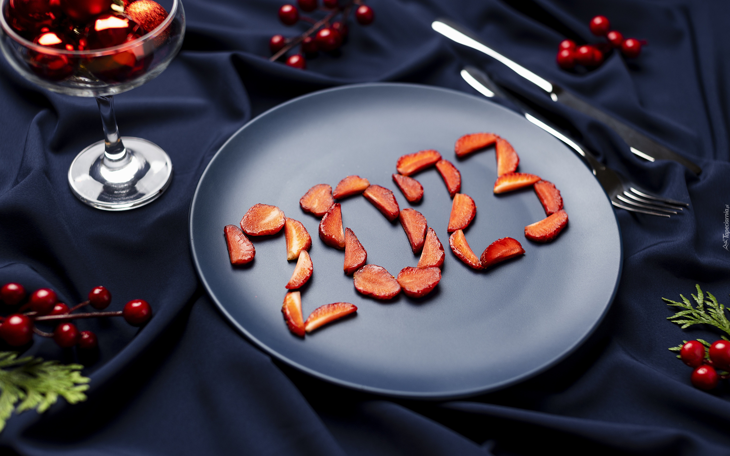 Edytor tapety: Cyfry 2023 z truskawek na talerzu