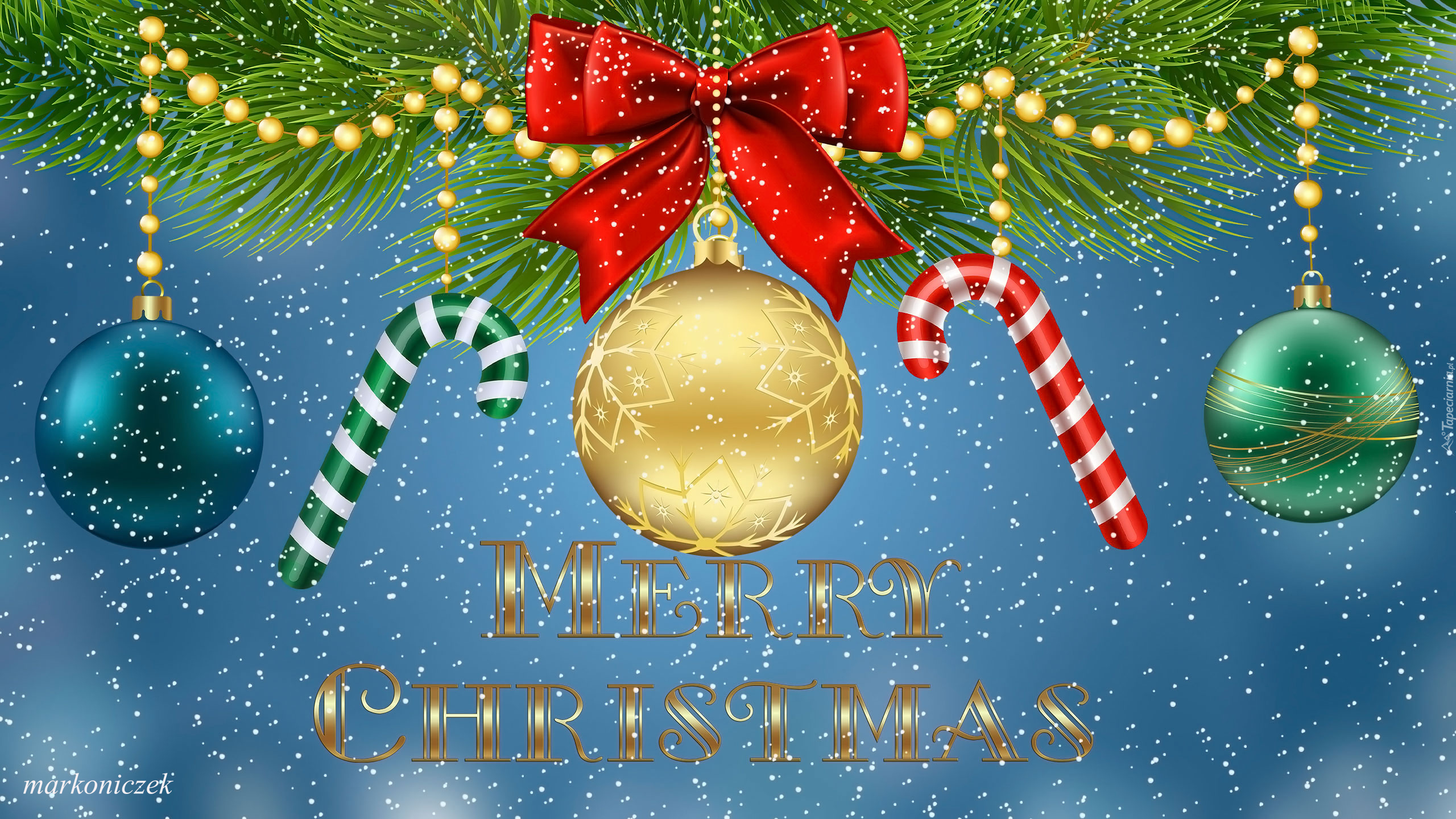 Edytor tapety: Bombki i laski cukrowe nad życzeniami