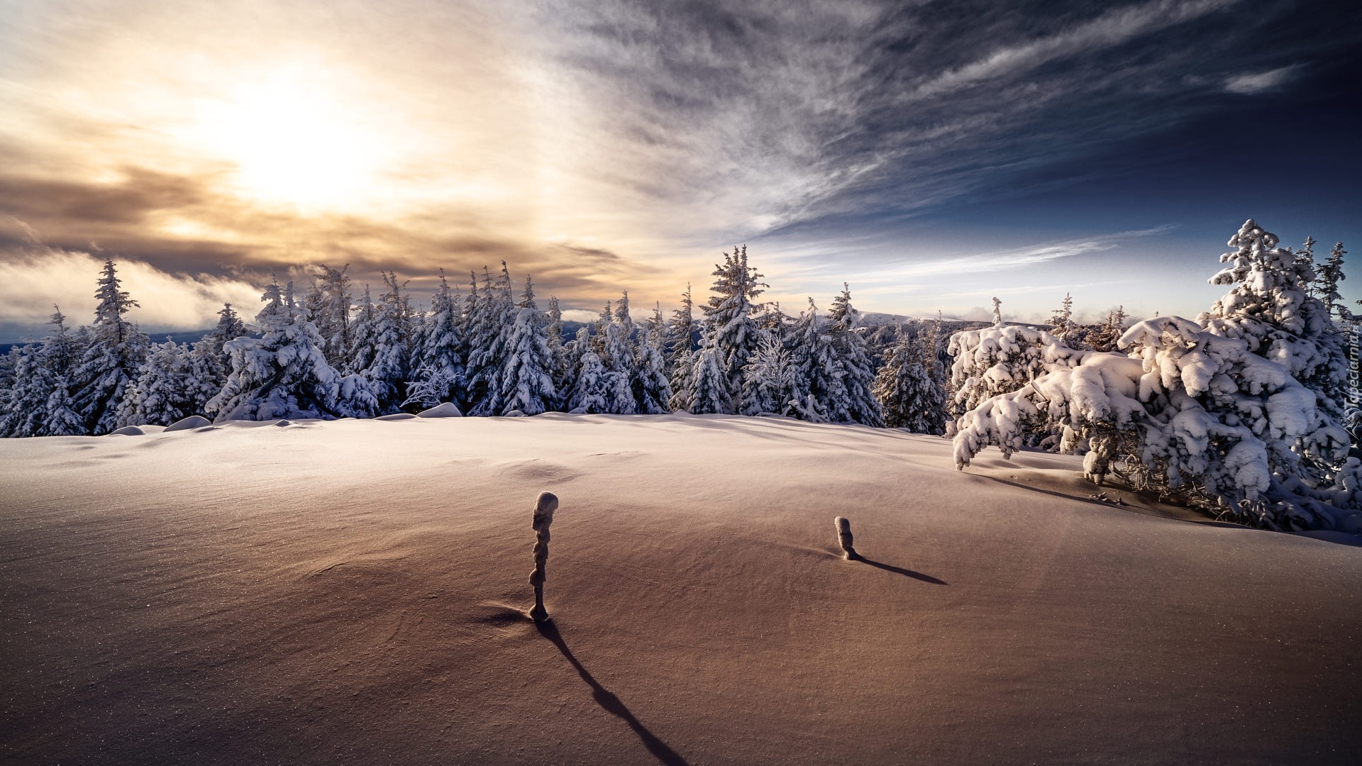 Edytor tapety: Ośnieżone drzewa na skraju polany