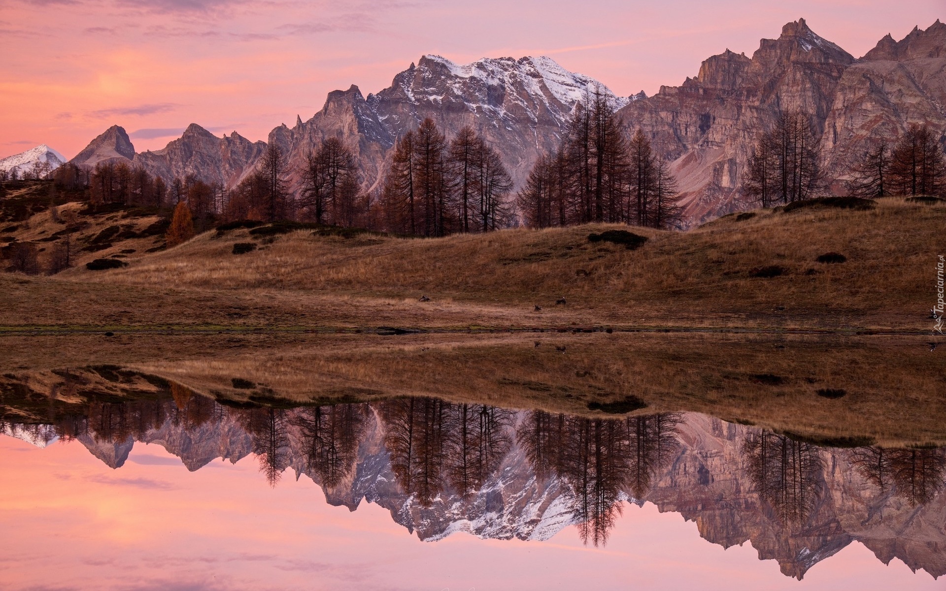 Edytor tapety: Odbicie gór w jeziorze jesienną porą