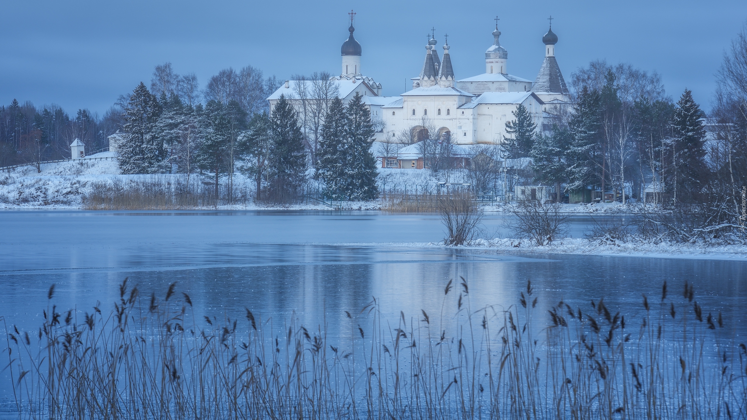 Edytor tapety: Monaster Terapontowski nad jeziorem w Rosji