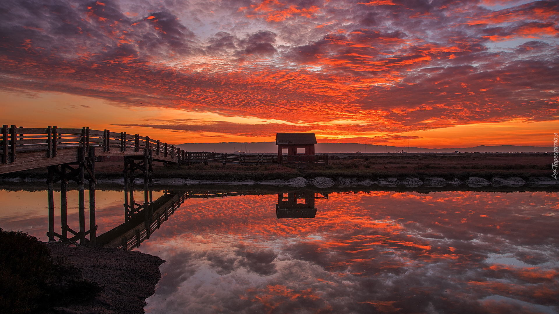 Edytor tapety: Zachód słońca nad stawem w Newark