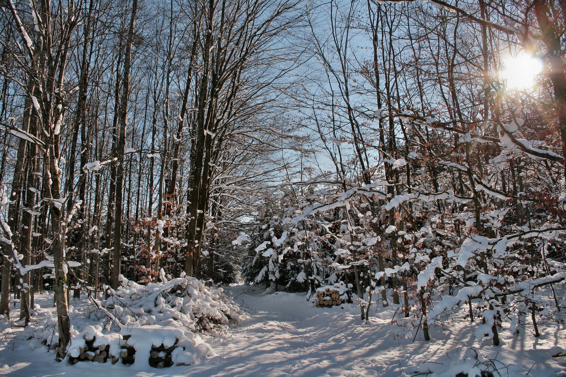 Edytor tapety: Ścieżka w słonecznym zimowym lesie