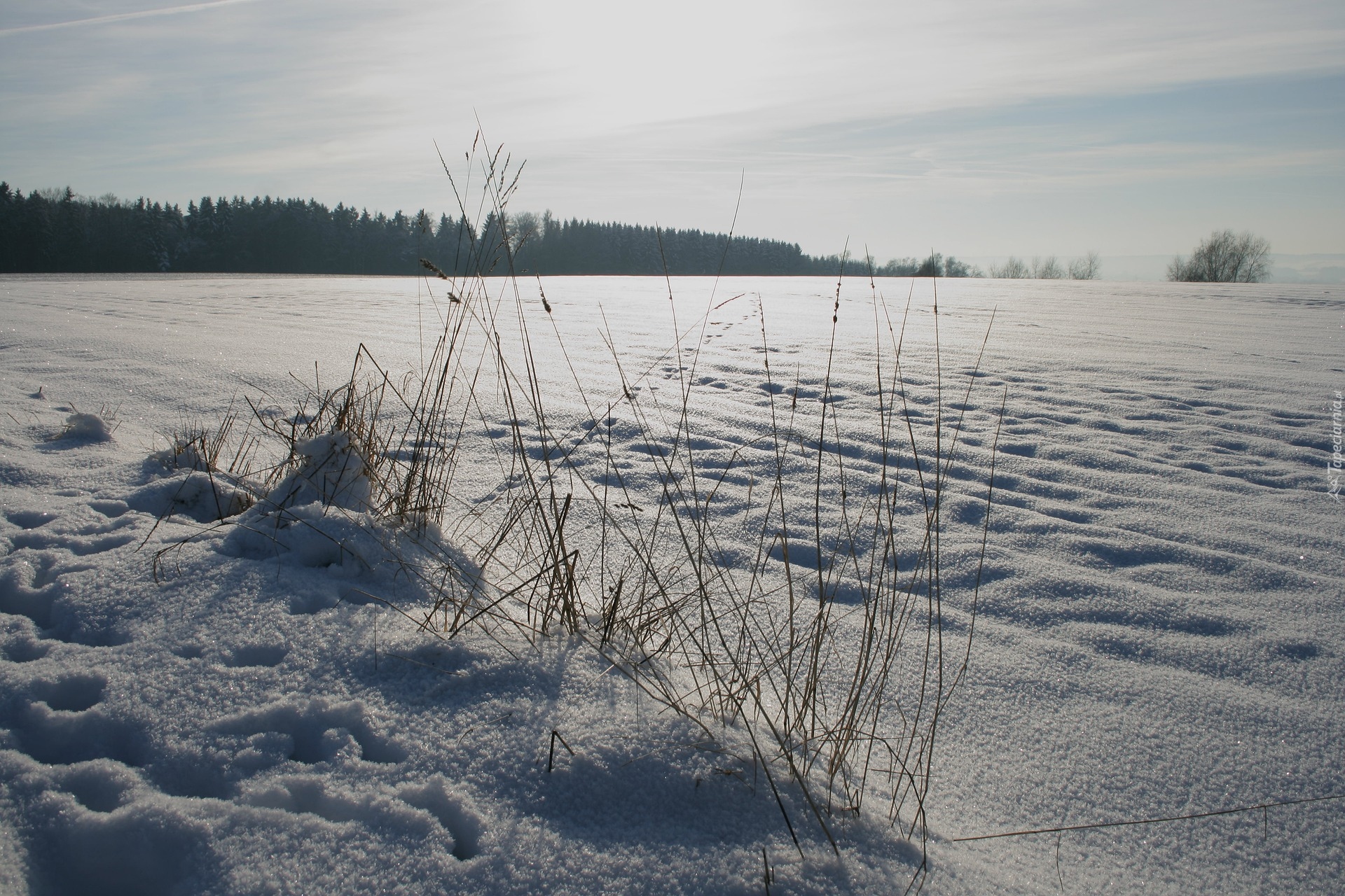 Edytor tapety: Trawy i ślady na głębokim śniegu