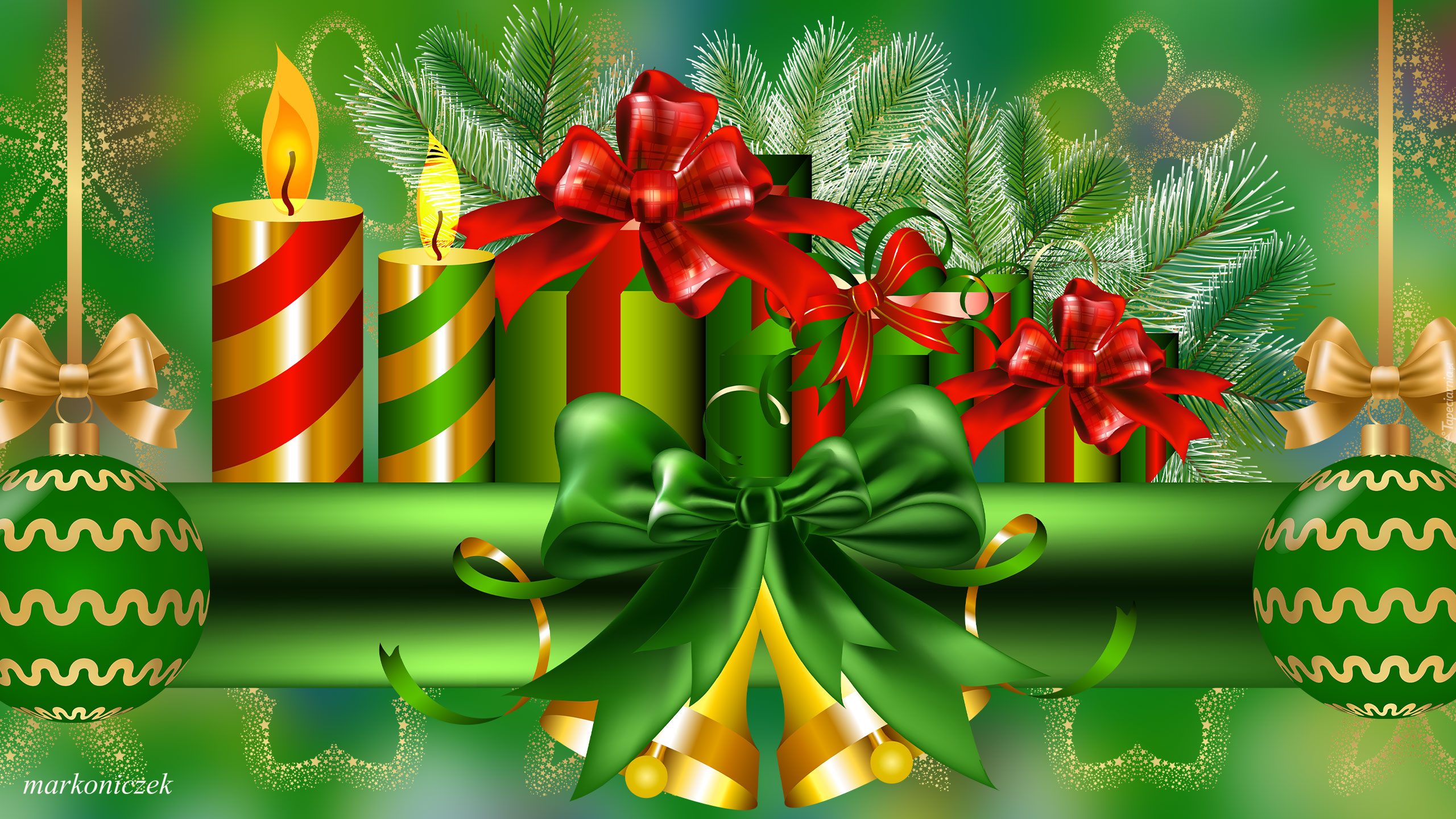 Edytor tapety: Świece i dzwonki z kokardkami