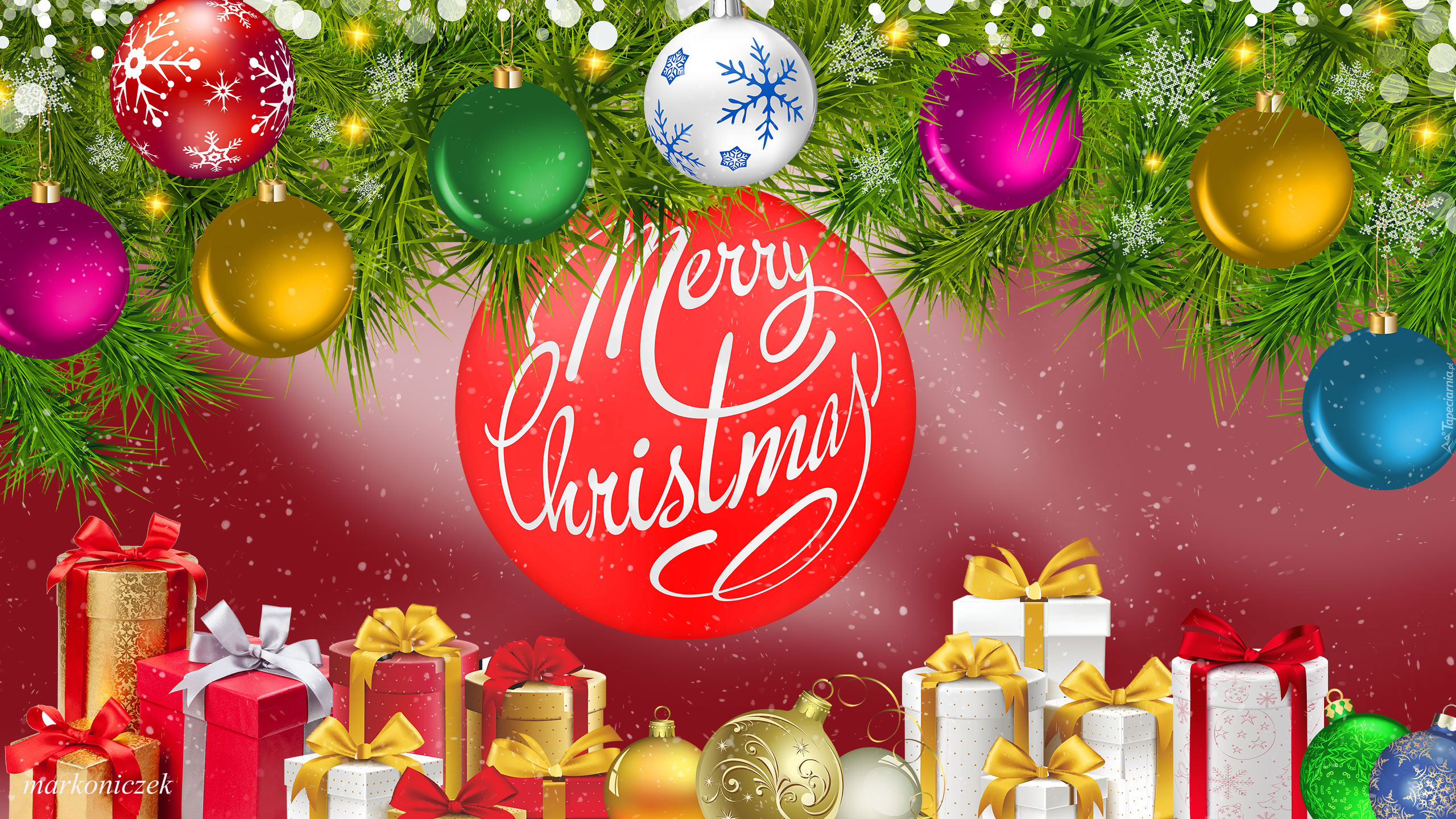 Edytor tapety: Prezenty pod zwisającymi bombkami