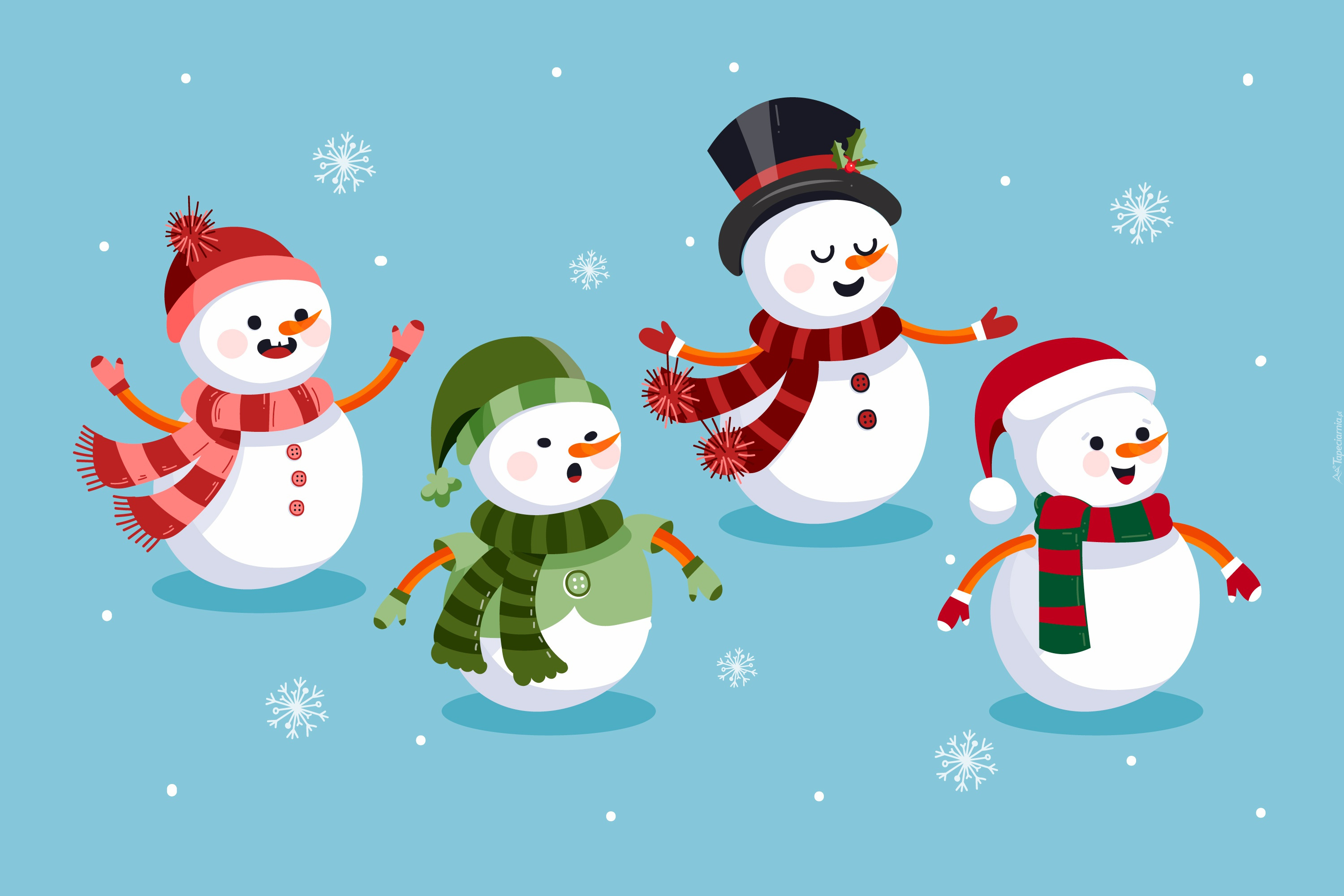 Edytor tapety: Cztery bałwanki wśród śnieżynek