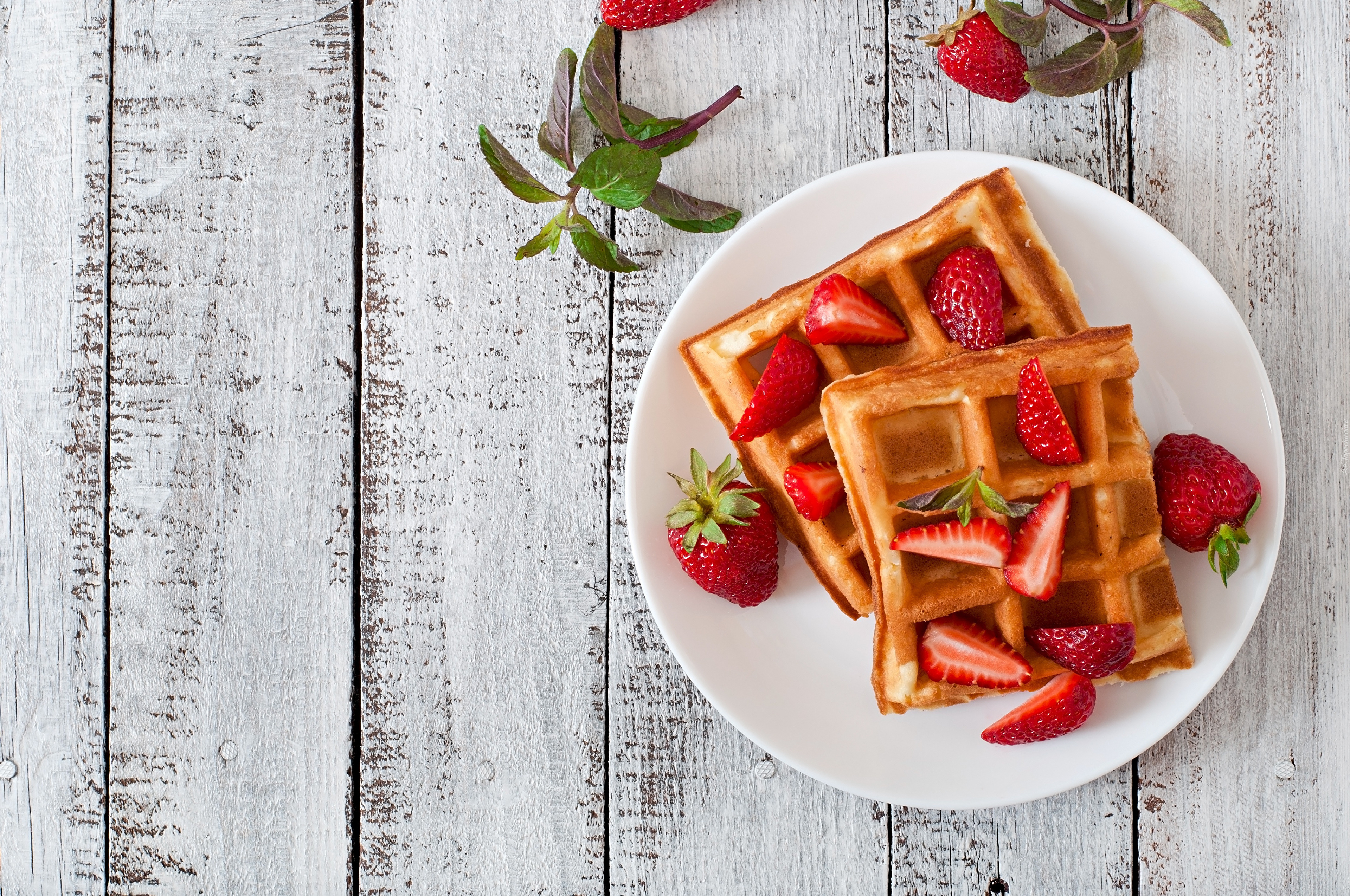 Edytor tapety: Gofry i truskawki na talerzu