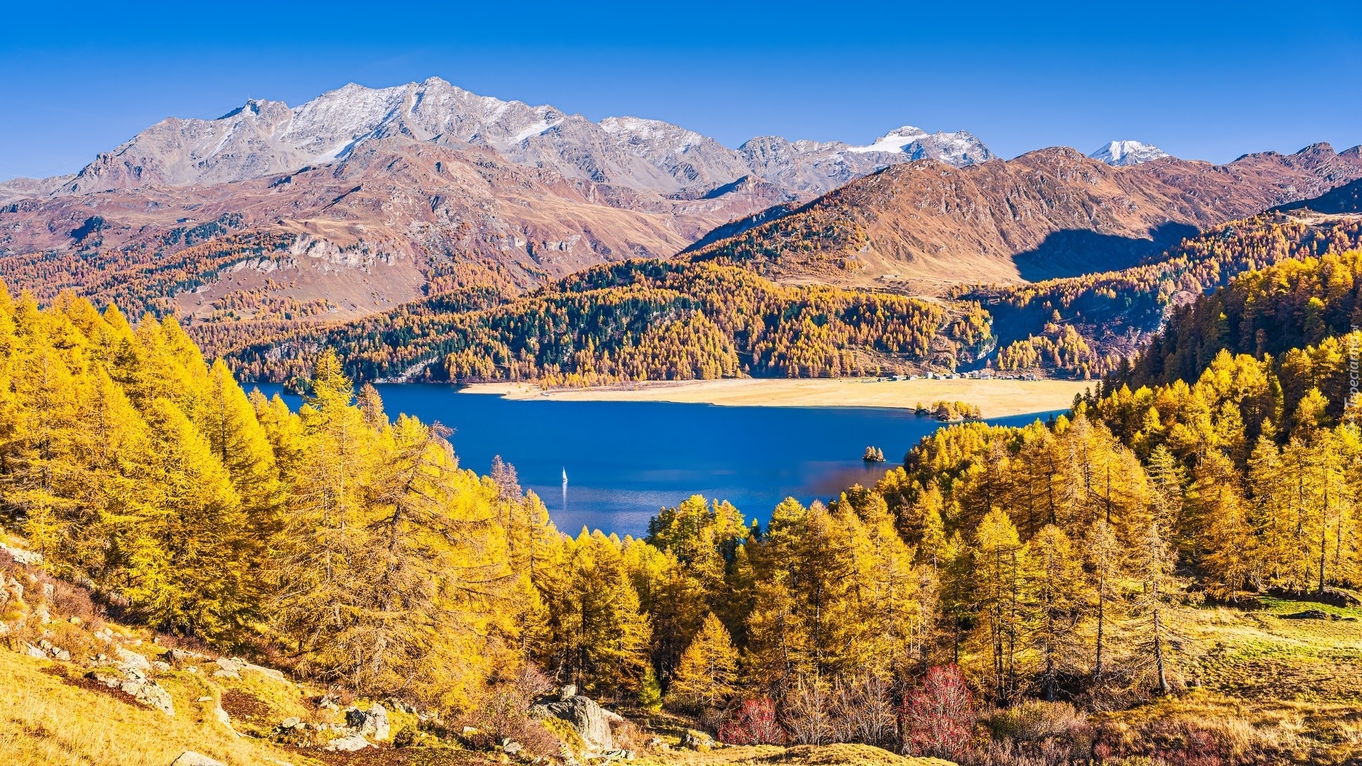 Edytor tapety: Rzeka Inn w Dolinie Engandyna w Szwajcarii