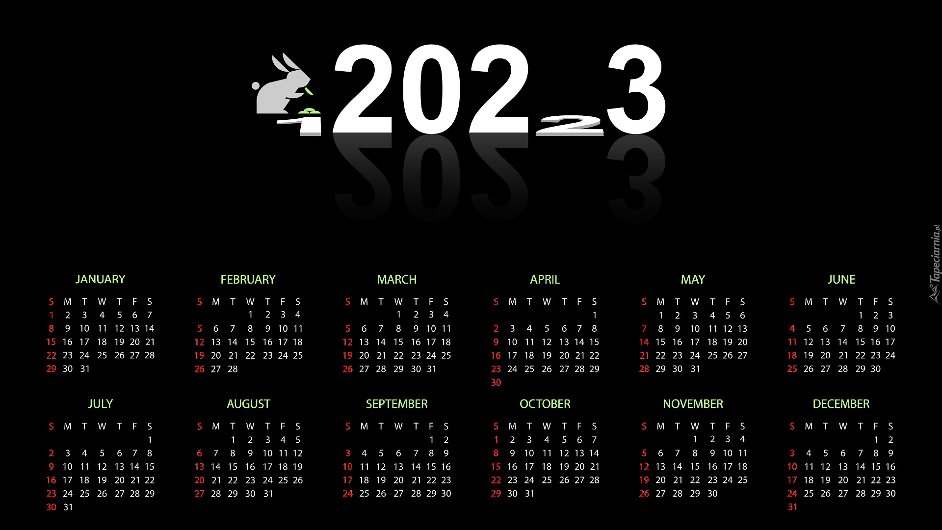 Edytor tapety: Kalendarz na rok 2023 na ciemnym tle