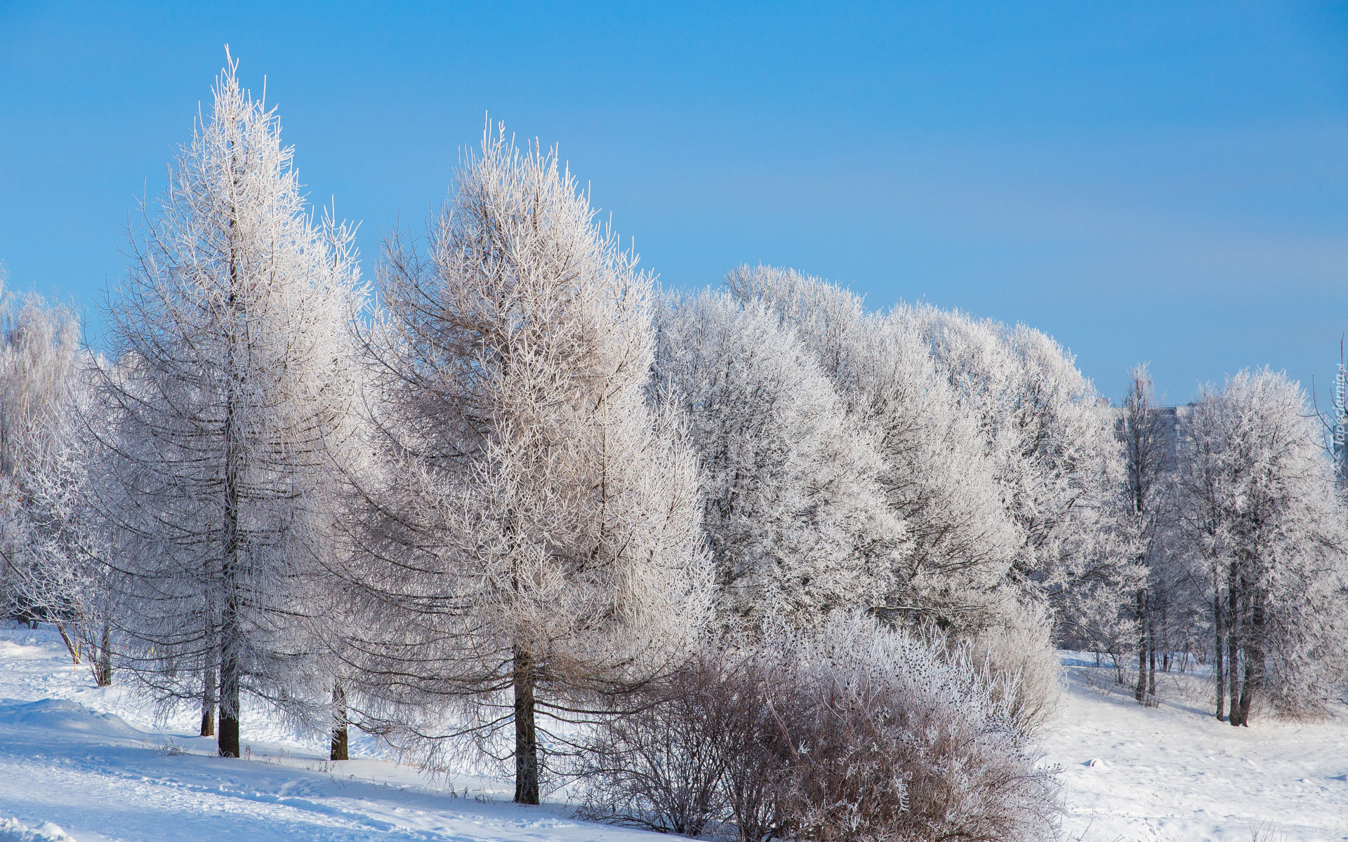 Edytor tapety: Drzewa oprószone śniegiem