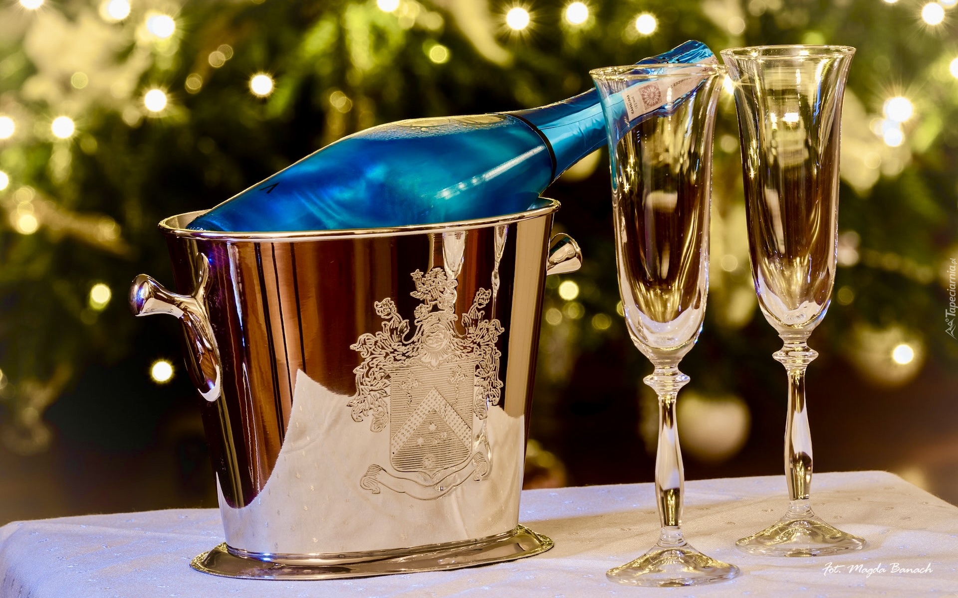Edytor tapety: Szampan w wiaderku i dwa kieliszki