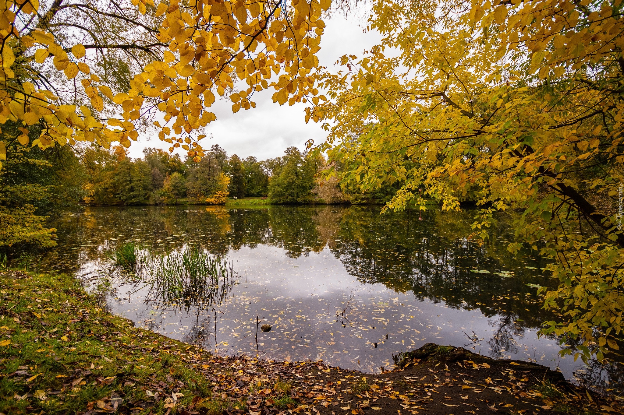 Edytor tapety: Kolorowa jesień w parku nad stawem