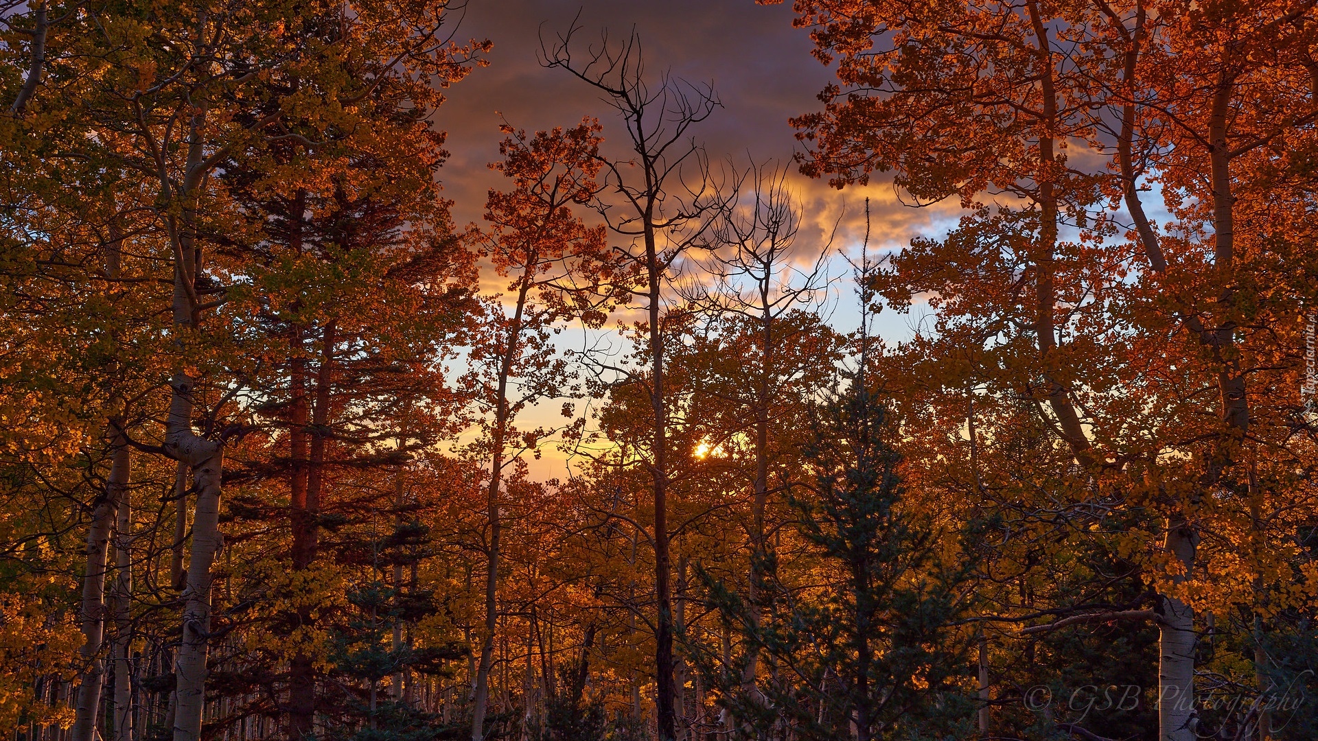 Edytor tapety: Chmury nad jesiennymi drzewami