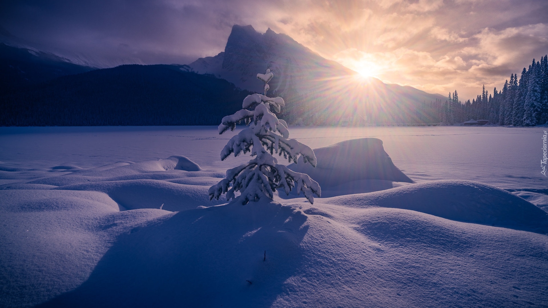 Edytor tapety: Drzewo w zaspie w promieniach słońca