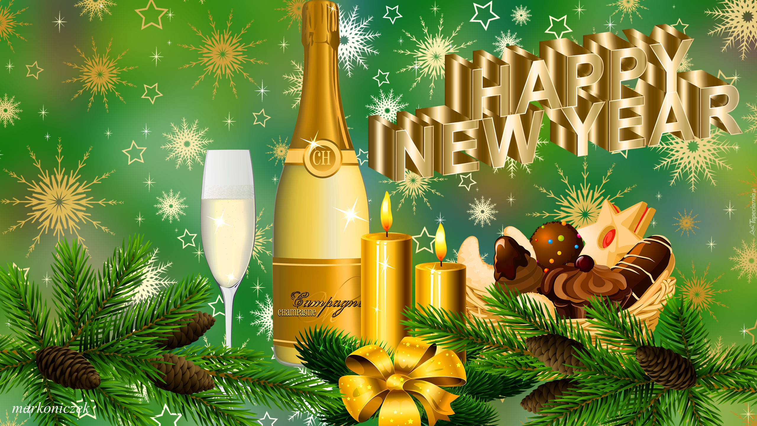 Edytor tapety: Noworoczne życzenia na zielonym tle