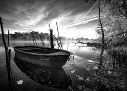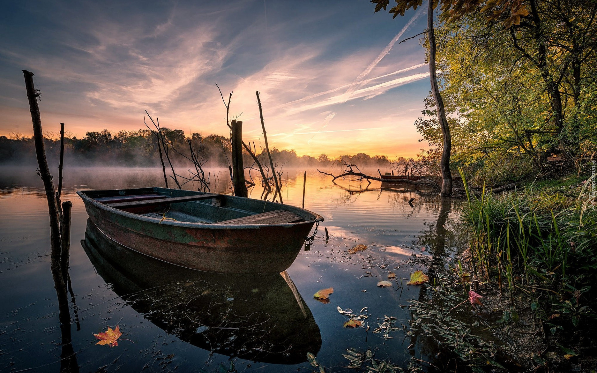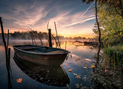 Edytor tapety: Łódka na jeziorze o świcie