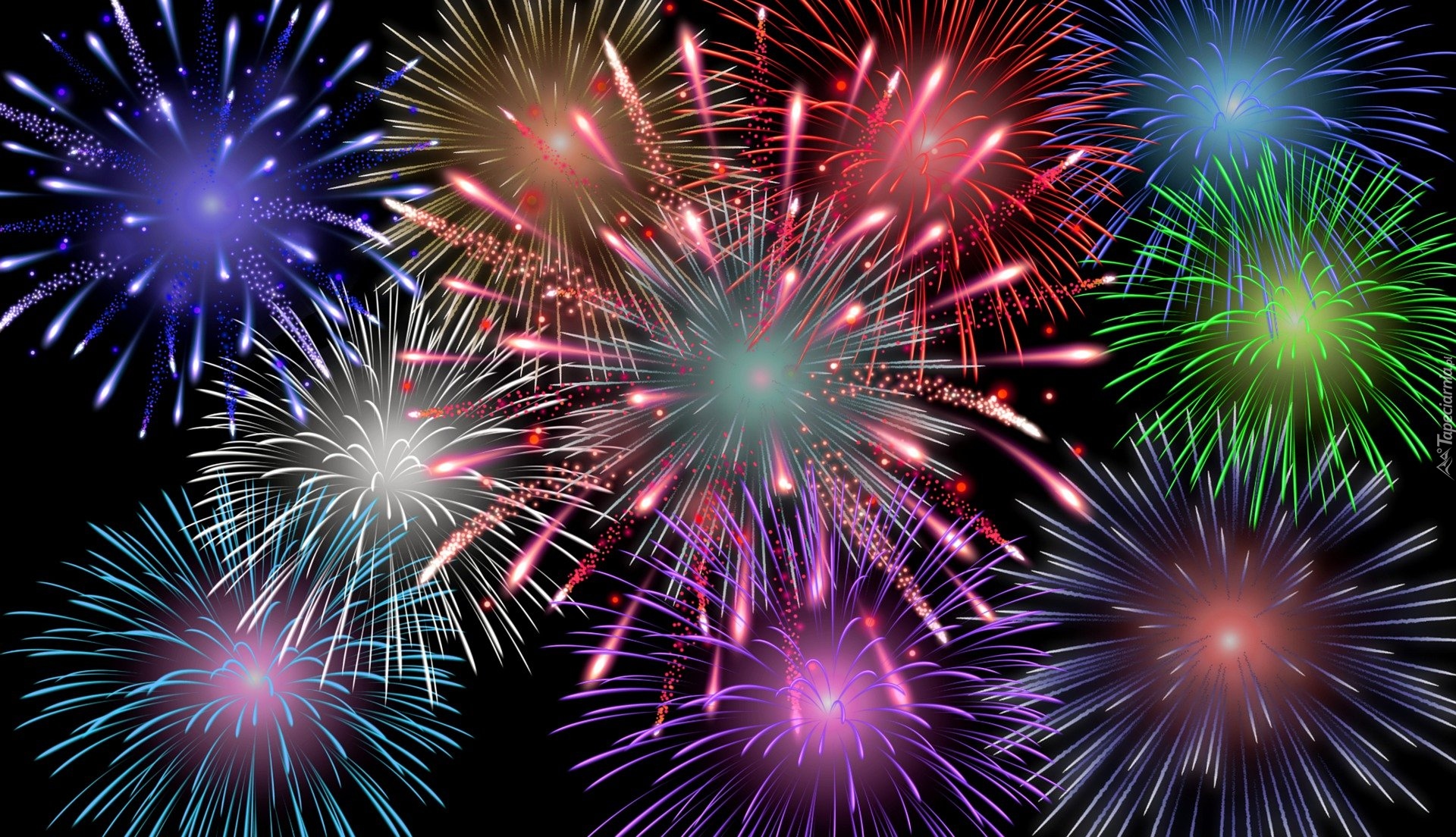 Edytor tapety: Kolorowe fajerwerki na ciemnym tle