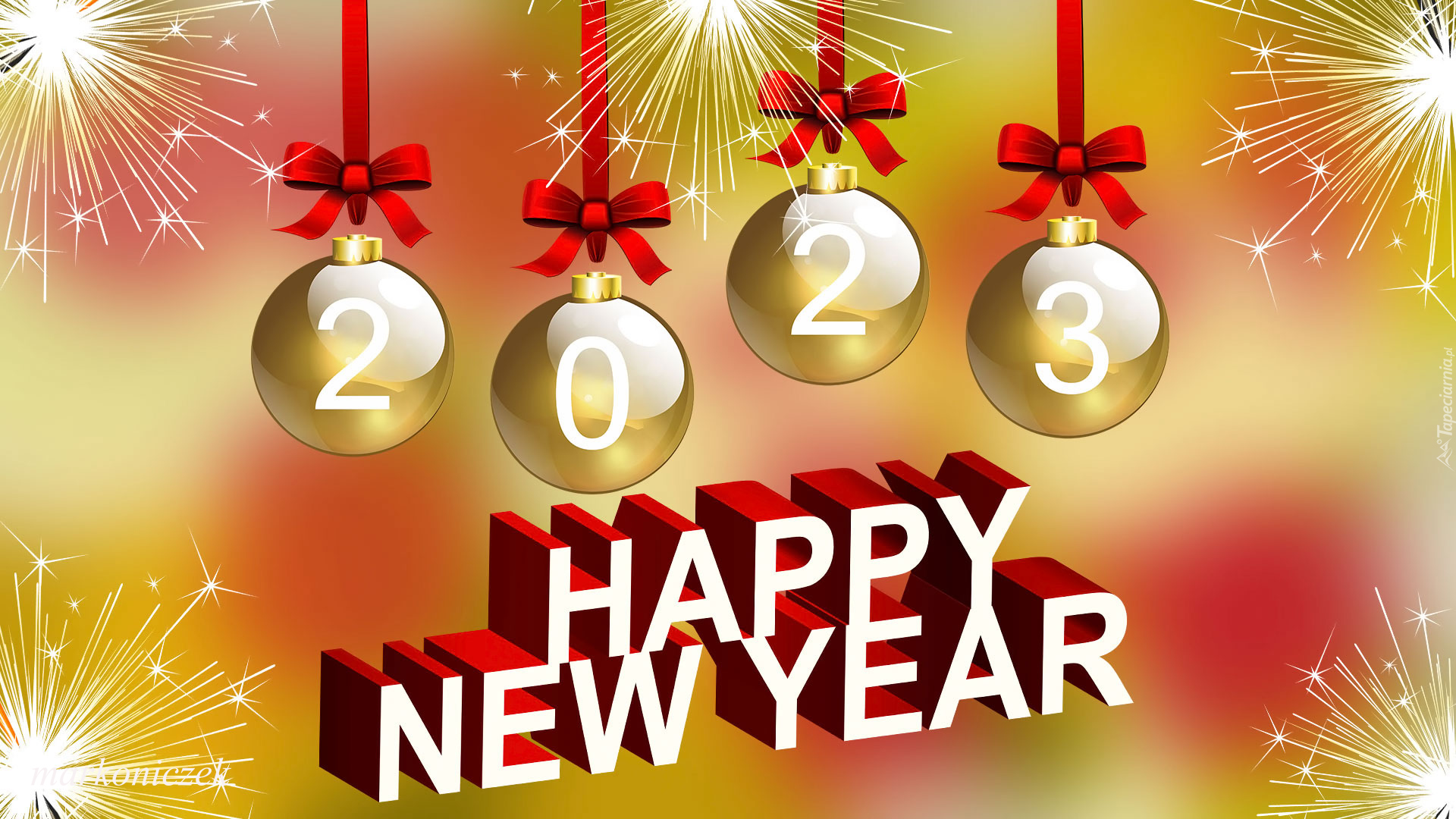 Edytor tapety: Data 2023 na bombkach nad życzeniami noworocznymi